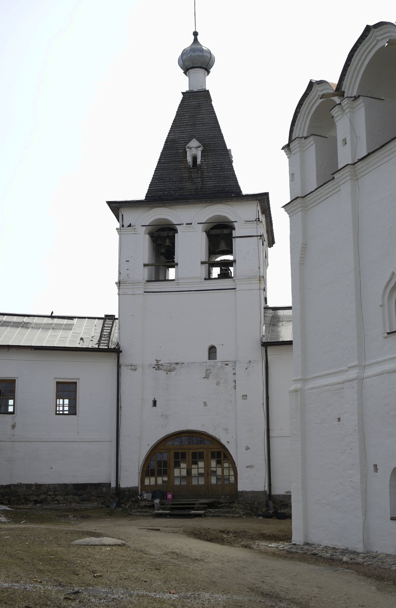 Особую ценность представляет собой древний часовой механизм 1635 года, сохранившийся внутри колокольни и являющийся свидетельством инженерной мысли наших благочестивых предков. Через сводчатый проём в первом ярусе колокольни, который служит главным входом в монастырь, паломники попадают на территорию обители, основанной преподобным Ферапонтом в 1398 году.
