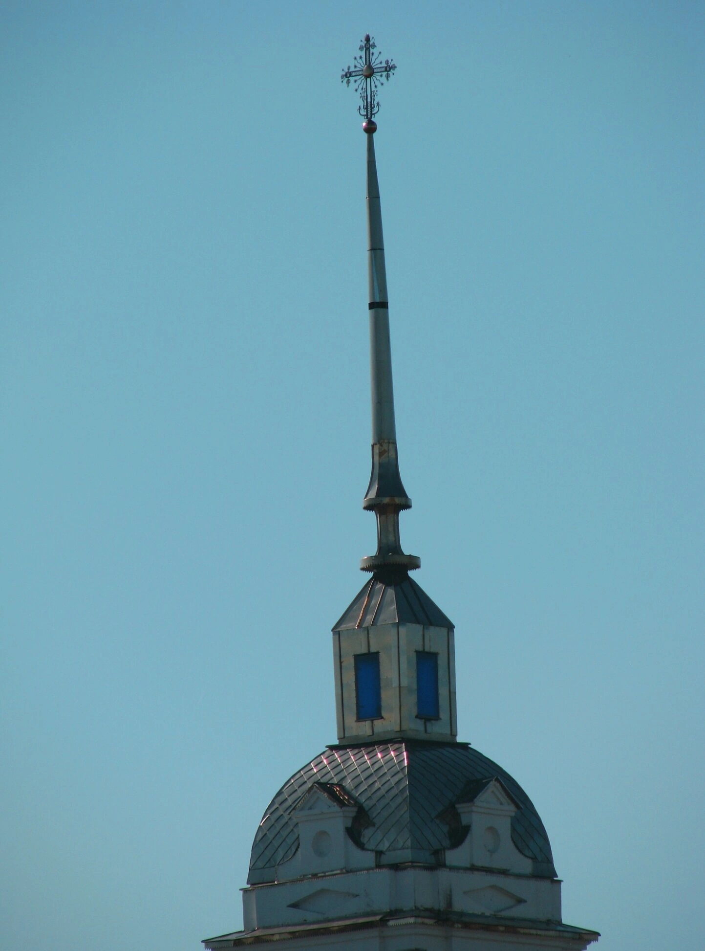 Колокольня имеет гранёную купольную кровлю, выполненную в традициях русского церковного зодчества. На кровле оборудованы люкарны — слуховые окна, предназначенные для освещения внутреннего пространства подкупольной части. Над кровлей возвышается изящный барабан, служащий основанием для устремлённого в небо шпиля. Архитектурный деколит основания шпиля отличается благородной строгостью и гармонией линий, характерной для классической русской архитектуры.