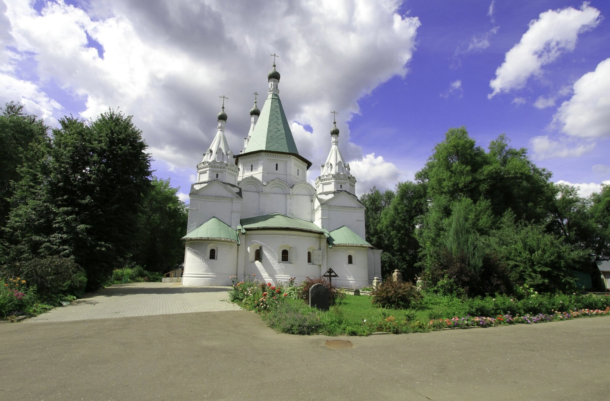 Шатровая колокольня, выполненная в традициях московского зодчества, украшена несколькими ярусами декоративных кокошников, которые создают богатую игру света и тени. Белоснежные стены храма, характерные для московского барокко, символизируют духовную чистоту и благодать. Архитектурные формы отличаются строгой гармонией и пропорциональностью, что свидетельствует о высоком мастерстве русских зодчих.