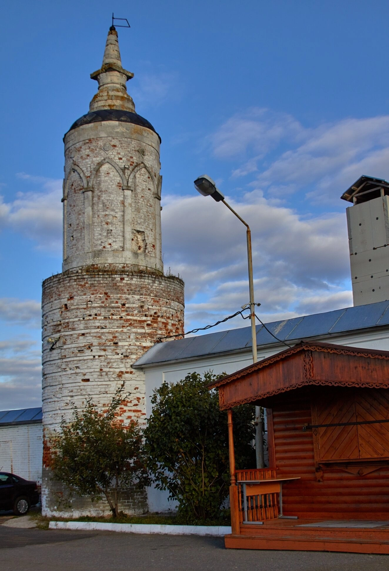 На представленной фотографии запечатлена колокольня храма Рождества Христова в селе Гололобово Коломенского городского округа Московской области. Это юго-западная башня колокольни, выполненная в традициях русской церковной архитектуры. Храм является действующим православным приходом Коломенской епархии Русской Православной Церкви и объектом культурного наследия.