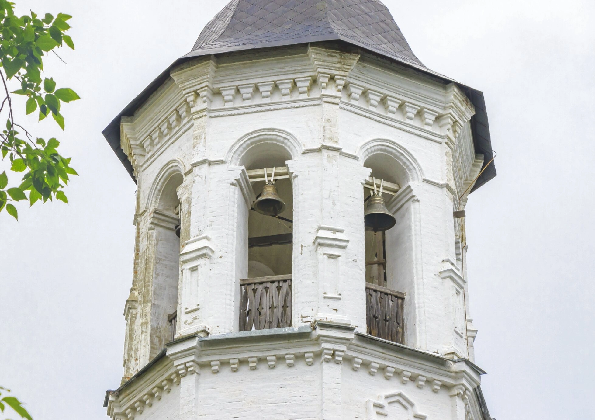 Особого внимания заслуживает сохранившийся деревянный балкон, который не только выполняет практическую функцию, но и придаёт сооружению особое архитектурное своеобразие. Арочные проёмы яруса звона обрамлены кирпичными наличниками, демонстрируя мастерство строителей XVIII столетия.