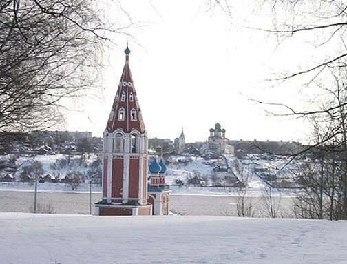 - Колокольня Казанской Преображенской церкви в зимнем Тутаеве