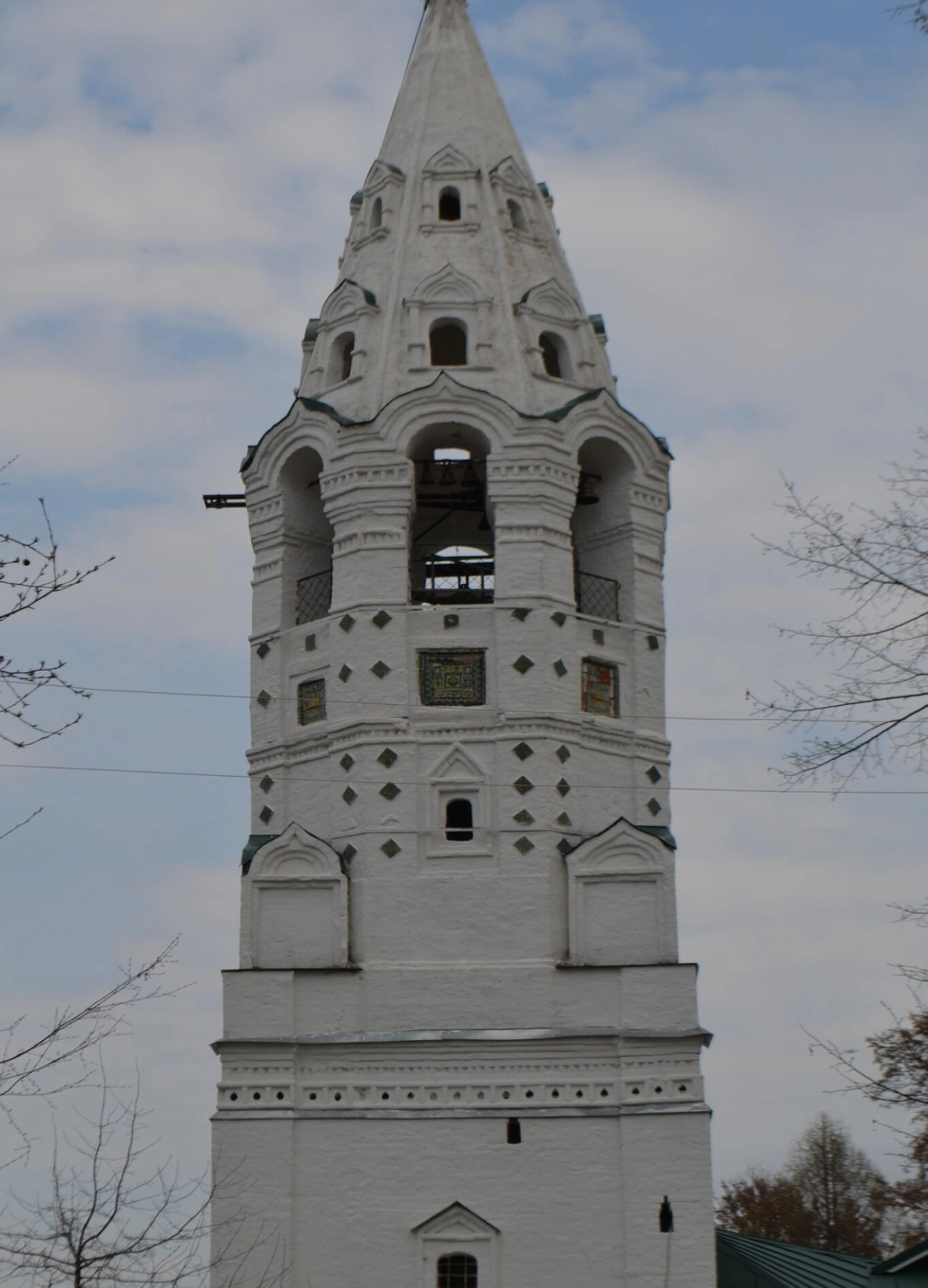 Покровская церковь, частью которой является эта колокольня, была построена в середине XVIII века. Храмовый комплекс, включающий в себя тёплую Покровскую церковь и летний Спасский храм, представляет большую историко-культурную ценность и является объектом культурного наследия. В безбожные годы XX века храм разделил судьбу многих русских святынь, но ныне в нём вновь совершаются богослужения, а колокольный звон возвещает о возрождении духовной жизни.