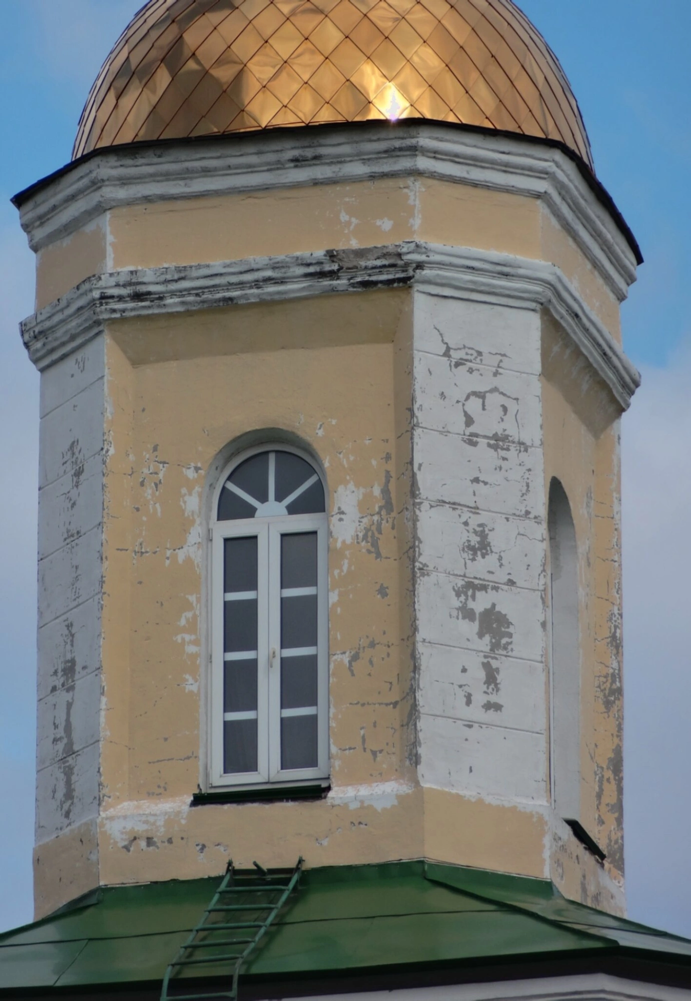 Колокольня увенчана золочёным куполом, выполненным в традиционной для русского православного зодчества полусферической форме. Купол, сияющий на солнце, символизирует небесную славу и устремлённость верующих к Богу. Восьмигранный ярус звона прорезают арочные окна, через которые льётся благовест колоколов, разносящийся по окрестностям и созывающий православных на молитву.