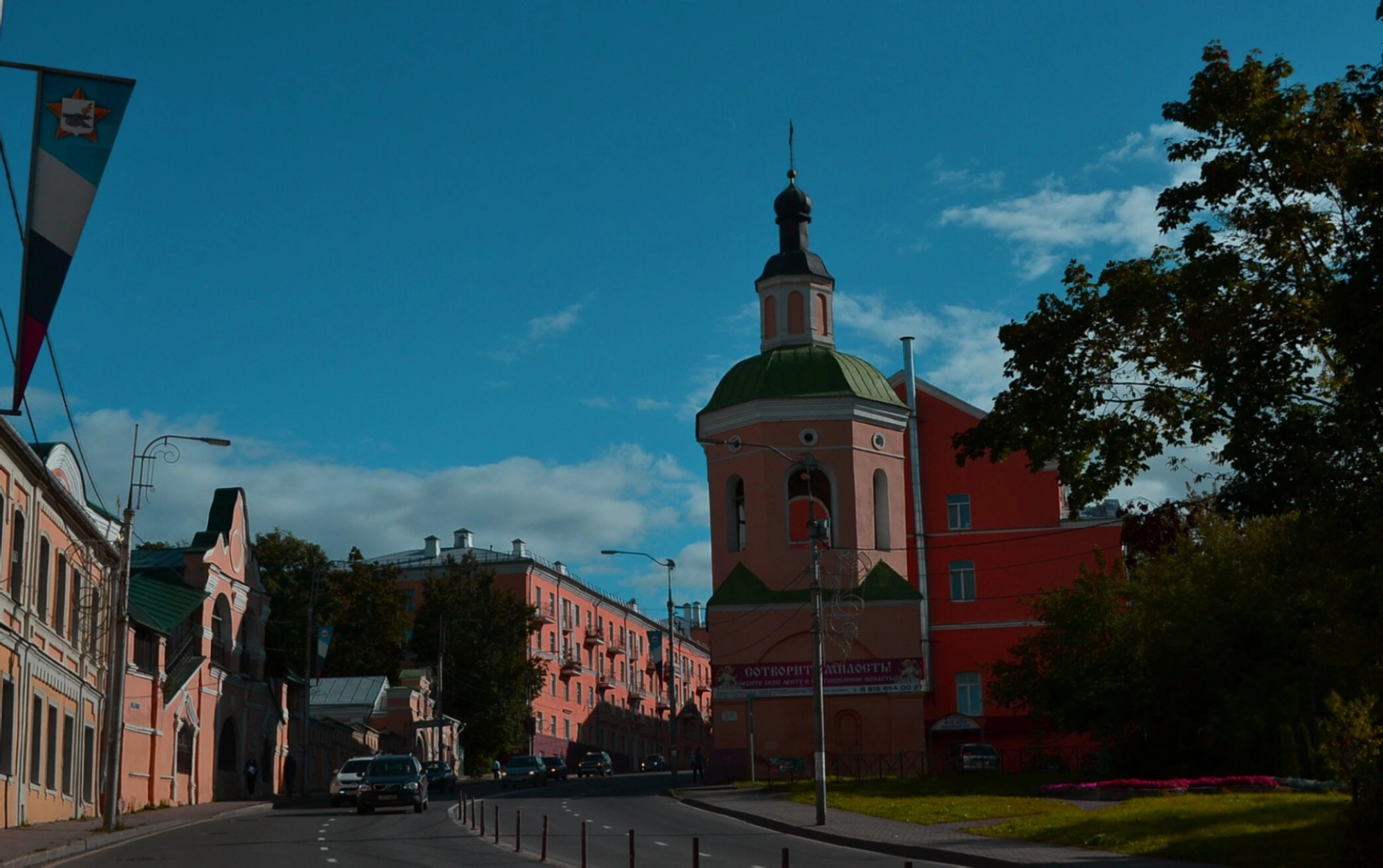 На представленной фотографии запечатлена колокольня Свято-Троицкого мужского монастыря в древнем городе Смоленске. Это выдающееся архитектурное сооружение является неотъемлемой частью исторического ансамбля монастырского комплекса, расположенного на улице Большой Советской.