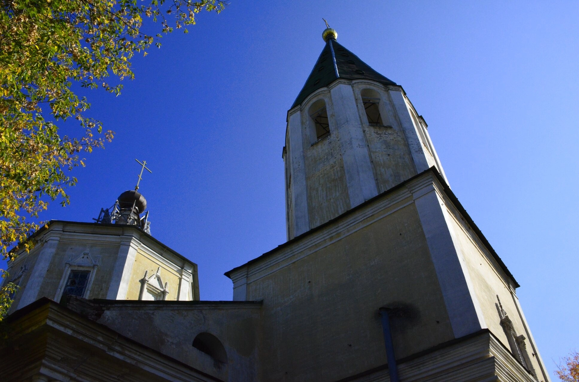 На представленной фотографии запечатлена колокольня Успенского собора исторического Отроча монастыря, расположенного в городе Твери. Монастырь, основанный в XIII веке, является одной из древнейших православных обителей Тверской земли и играл значительную роль в духовной и политической истории России.
