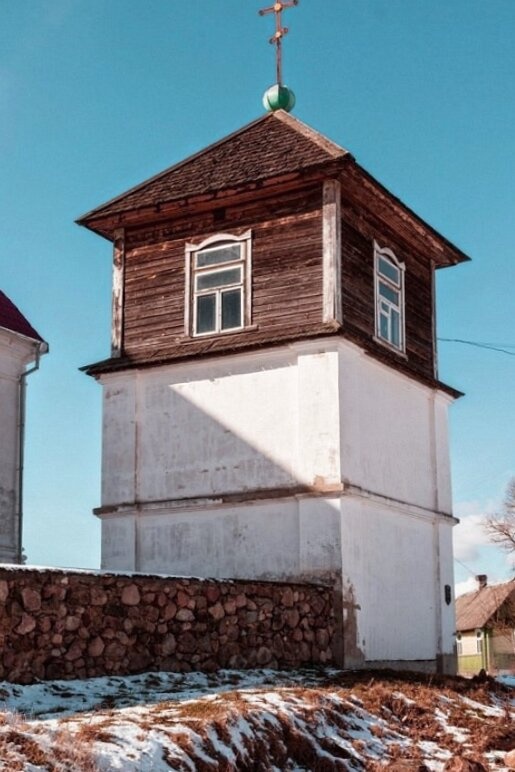 Колокольня демонстрирует традиционное двухъярусное строение. Нижний ярус, сложенный из камня и оштукатуренный, символизирует прочность и основательность веры. Верхний деревянный ярус, где размещены арочные проёмы для колоколов, свидетельствует о мастерстве местных зодчих. Венчает конструкцию изящный купол, увенчанный православным крестом, устремлённым в небеса.
