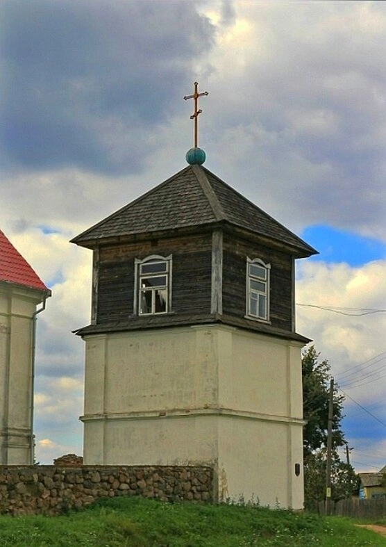 Архитектурный облик колокольни характерен для церковного зодчества Беларуси. Место, где расположен храмовый комплекс, отличается особой духовной атмосферой, что подчёркивается окружающим сельским пейзажем с живописными деревьями и пасмурным небом с просветами.