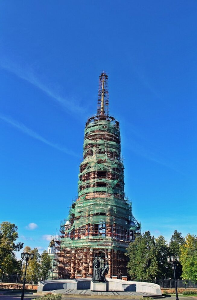 Колокольня Воскресенского собора в Шуе во время реставрационных работ