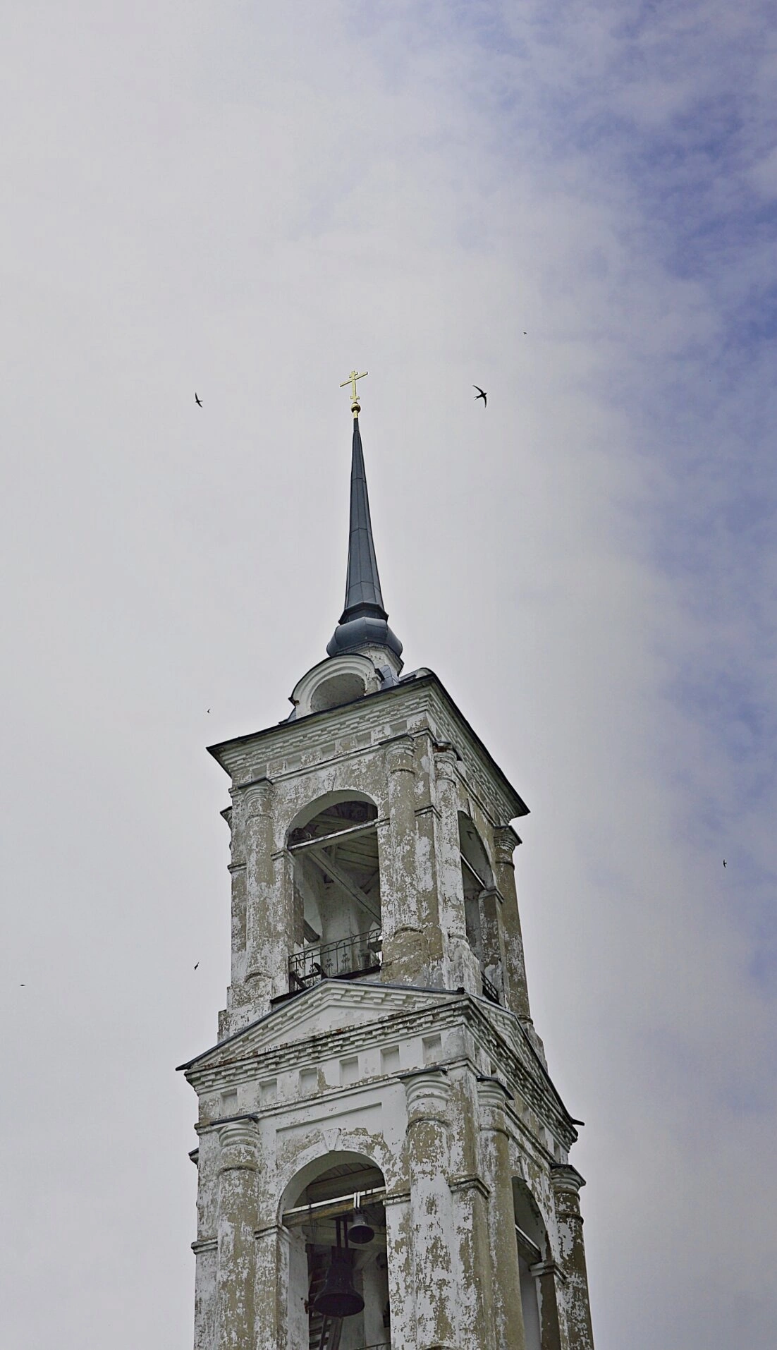 Колокольня, устремлённая в небеса, представляет собой яркий образец русского церковного зодчества. Её ярусы, увенчанные главкой с православным крестом, свидетельствуют о традициях храмового строительства, распространённых в костромских землях. Именно с таких колоколен разносился благовест, созывая верующих на молитву и возвещая о великих христианских праздниках.