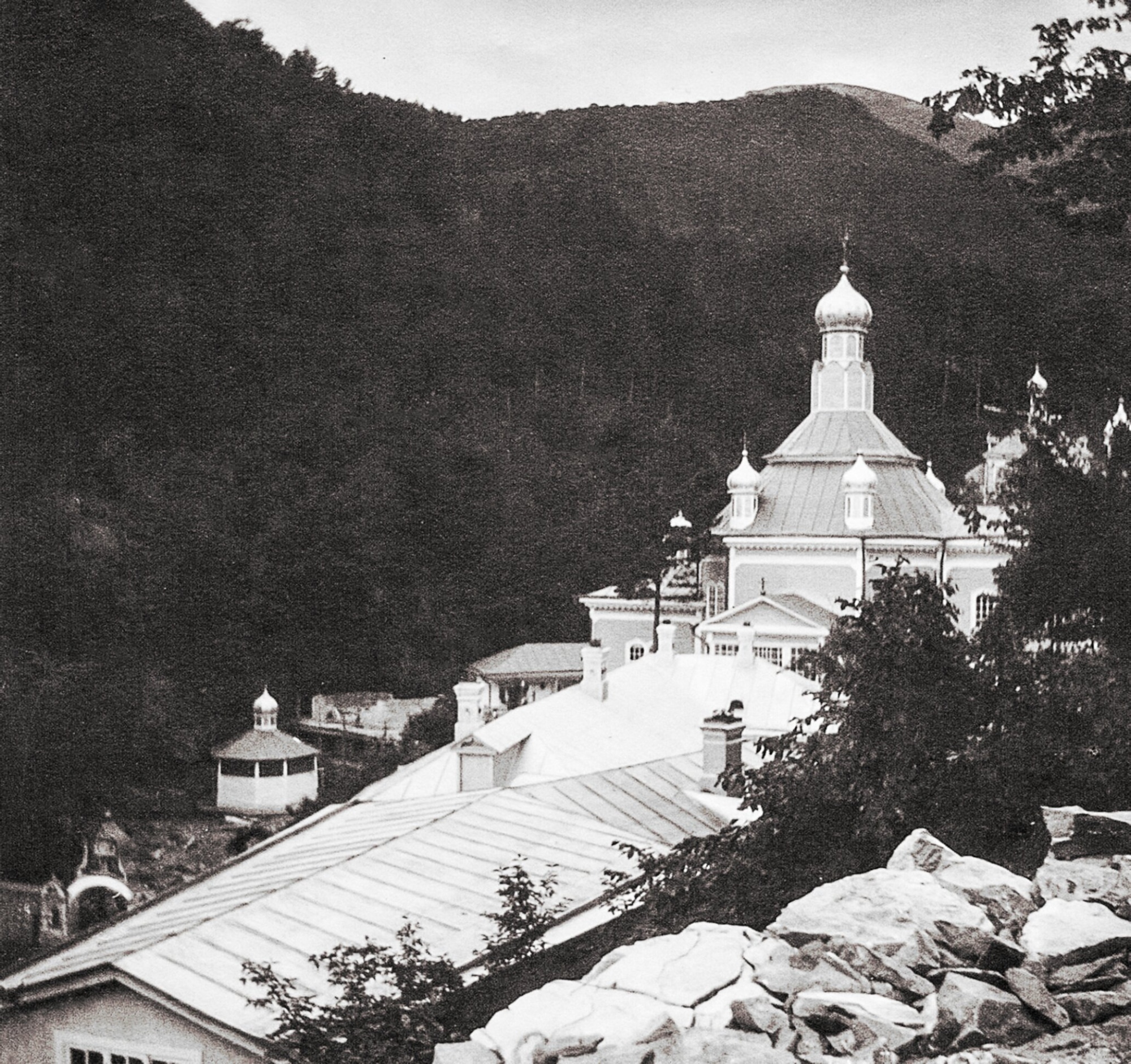 Данный снимок, сделанный в 1914 году, обладает особой исторической ценностью, запечатлев архитектурный ансамбль монастыря в дореволюционный период. Фотография передаёт не только внешний вид святых построек, но и дух благочестия, царивший в этой отдалённой крымской обители, которая была важным центром православного паломничества.