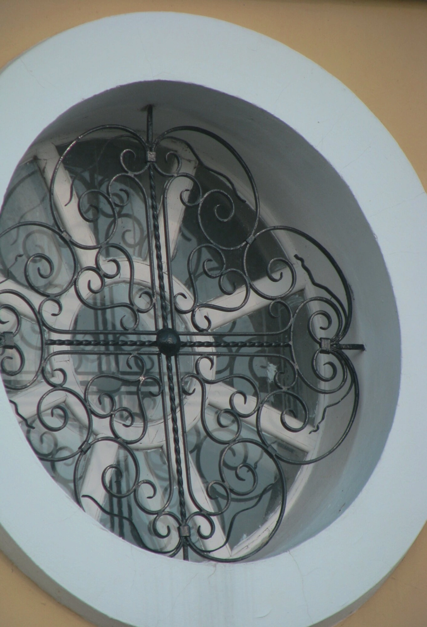 Решетка окна представляет собой выдающийся образец кузнечного искусства, предназначенный не только для защиты, но и для благолепного украшения дома Божия. Сложный, тонкий узор составлен из изящных завитков и побегов, символизирующих неувядаемую и цветущую в благодати духовную жизнь. В центре композиции располагается элемент, напоминающий собою крест, что зримо являет главный символ христианского спасения и напоминает о искупительной Жертве Спасителя.