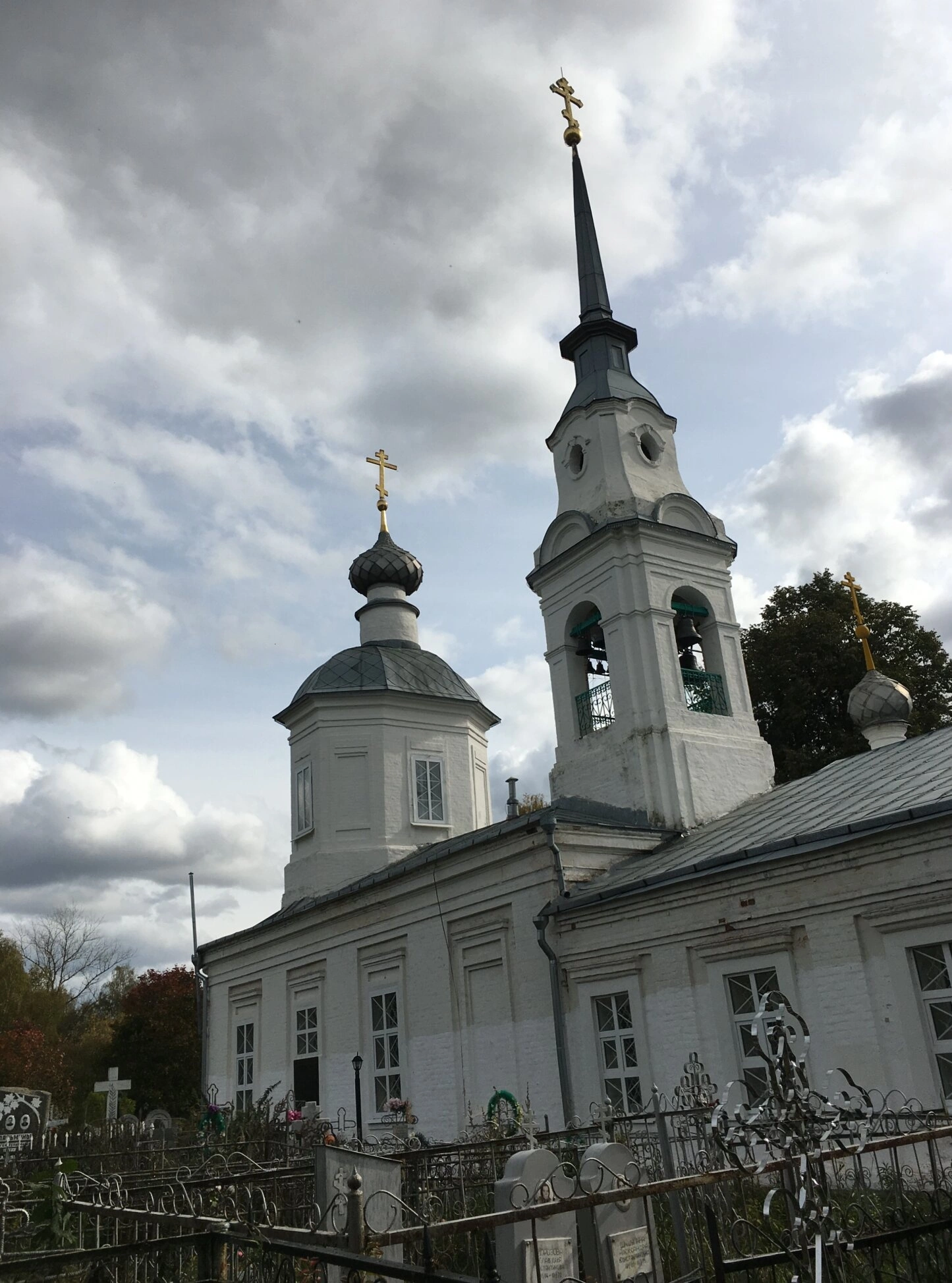На переднем плане фотографии видна сохранившаяся старинная ограда с воротами, ведущими на территорию храма. Рядом с церковью находится историческое кладбище, где погребены многие известные жители города и благотворители храма. Колокольня, возвышающаяся над основным объёмом, завершает архитектурный ансамбль и придаёт ему стройность и величие.