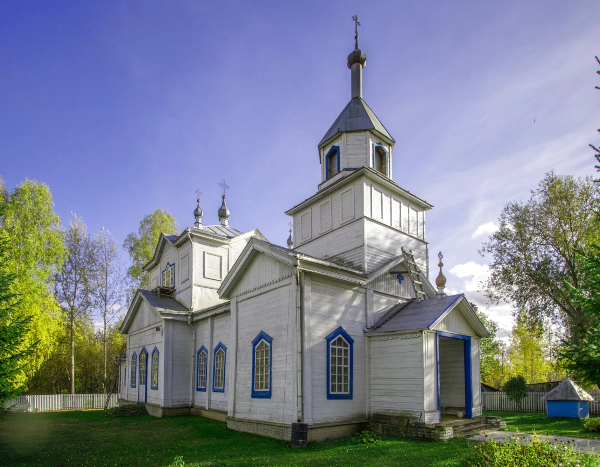 На представленной фотографии запечатлена Крестовоздвиженская церковь, расположенная в селе Потняк Кикнурского района Кировской области. Этот православный храм, освящённый в честь праздника Воздвижения Честного и Животворящего Креста Господня, является памятником архитектуры и духовным центром для местных жителей.