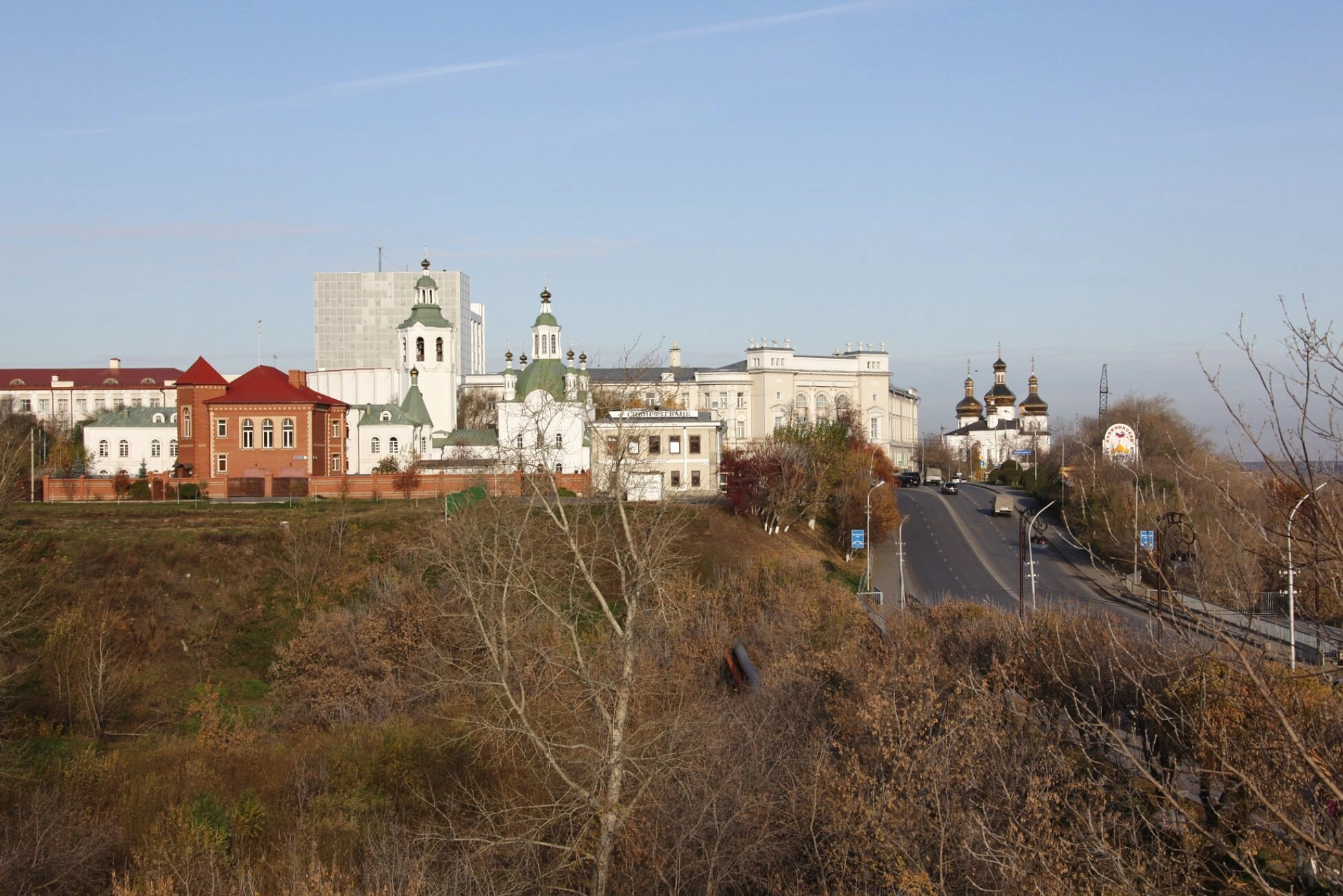 На представленной фотографии запечатлен величественный образ Крестовоздвиженской церкви города Тюмени, также известной среди верующих как Никольский храм. Этот православный храм, расположенный по адресу: улица Луначарского, дом 1, является значимым памятником церковной архитектуры и духовным центром города.