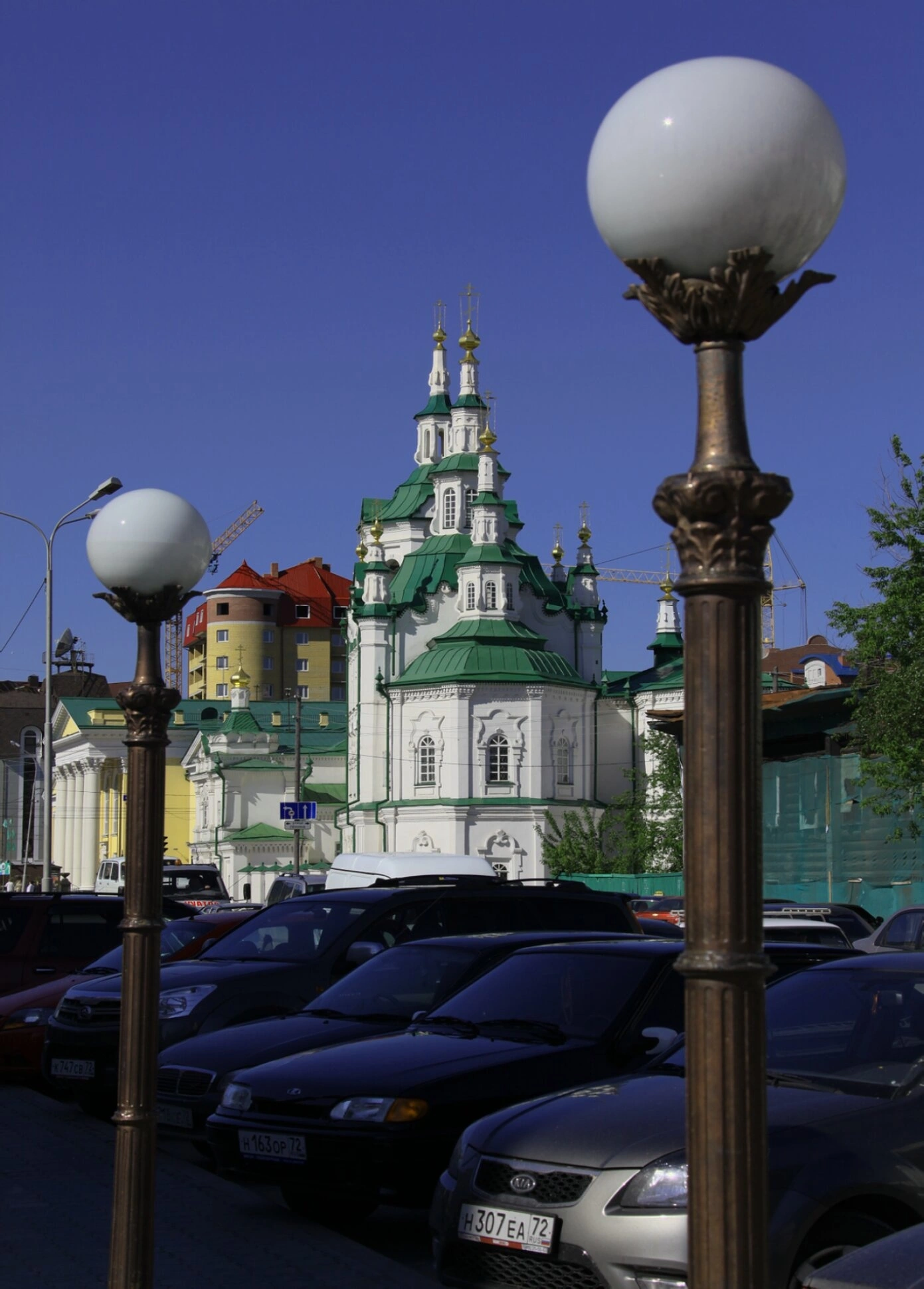 На переднем плане фотографии видны элементы современной городской инфраструктуры — уличные фонари и припаркованные автомобили, которые, однако, не затмевают собой величавую красоту духовной святыни. Исторически храм переживал периоды запустения и закрытия в годы гонений, но в 1990-е годы был возвращён Тобольской епархии и ныне является действующим. В нём ежедневно совершаются богослужения, хранятся почитаемые списки чудотворных икон, а его колокольный звон разносится далеко по округе, призывая верующих на молитву.