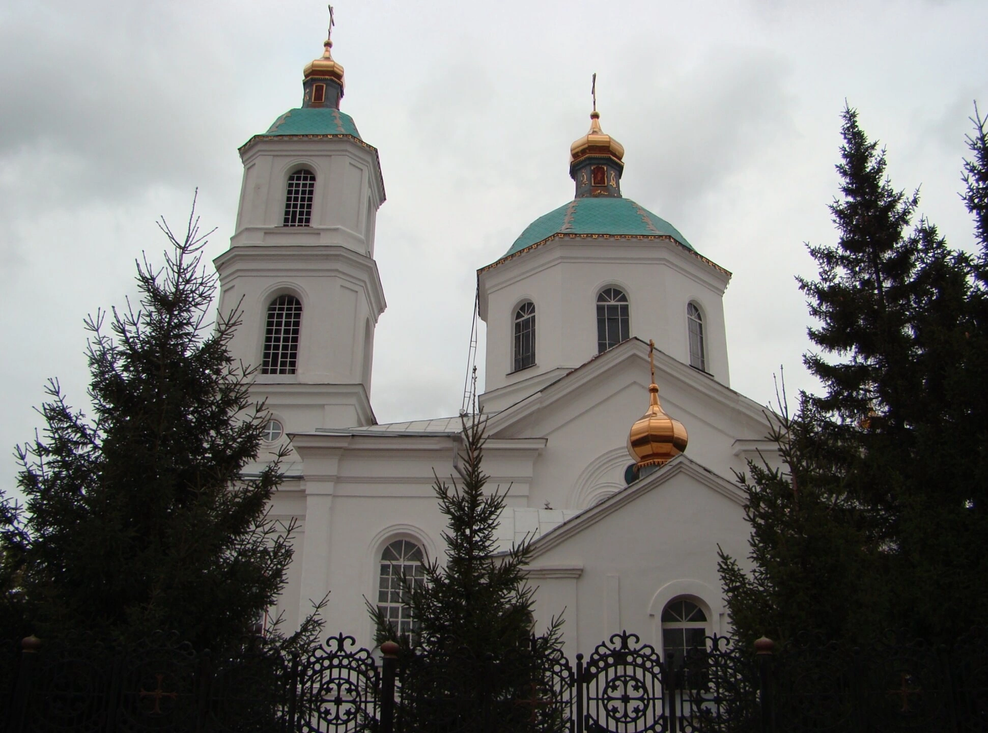 На представленной фотографии запечатлён величественный Крестовоздвиженский кафедральный собор, находящийся в городе Омске. Этот православный храм является одним из значимых духовных центров Сибири и выдающимся памятником церковной архитектуры.