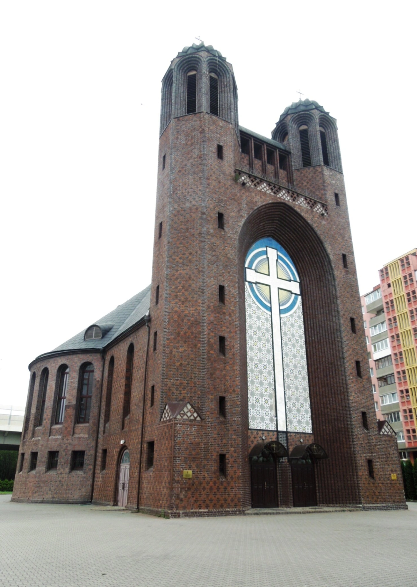 Собор был построен в 1930–1933 годах по проекту зодчего Артура Киктона для евангелической общины города Кёнигсберга и первоначально освящён как кирха Святого Креста (Kreuzkirche). Средства на строительство были собраны прихожанами. Архитектура здания представляет собой яркий пример стиля «новой вещественности» (Neue Sachlichkeit) с элементами модерна и готики. Фасад здания облицован клинкерным кирпичом, а его главной доминантой является строгая и высокая башня.