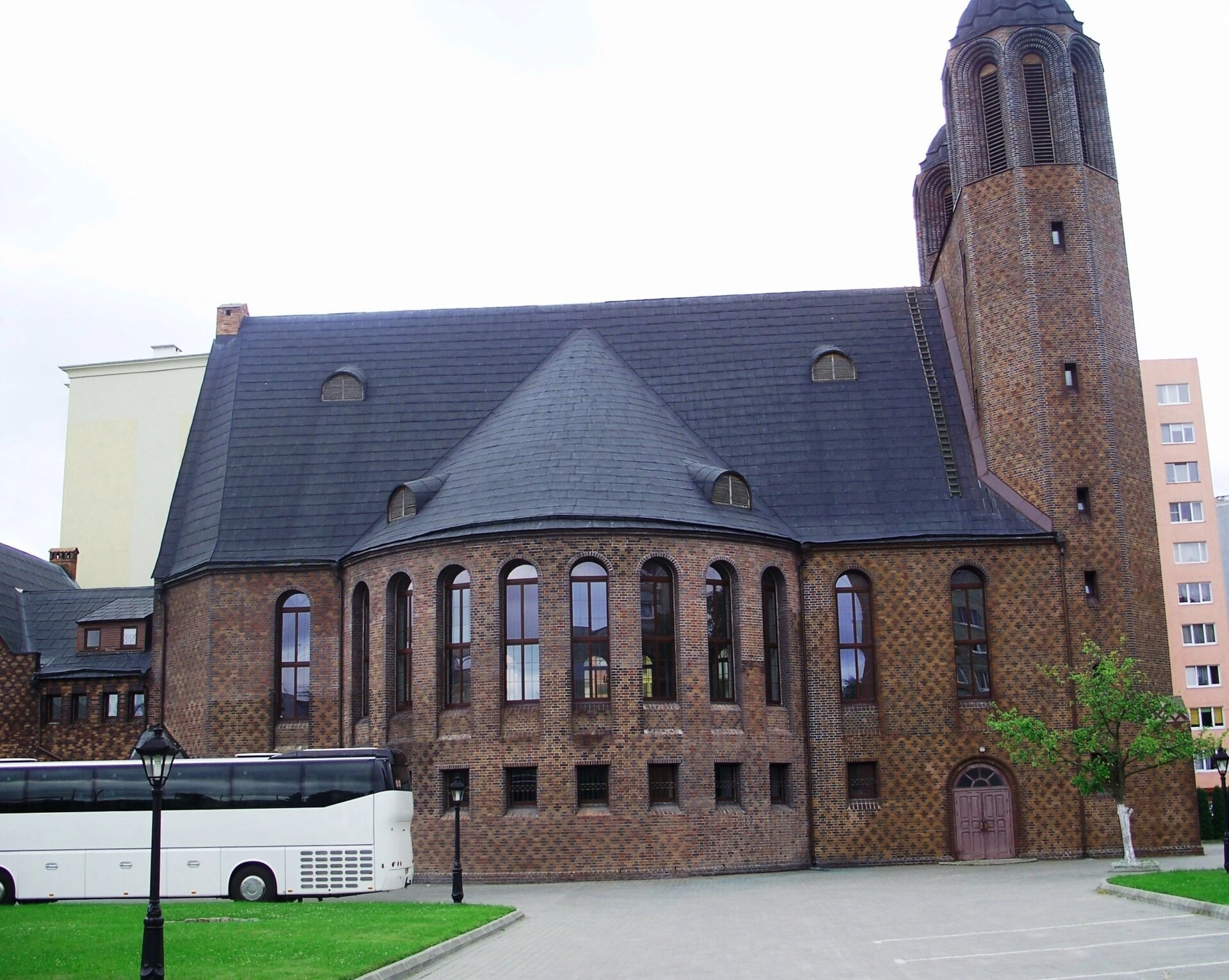 Величественное кирпичное здание, освящённое в 1933 году как лютеранский храм, является ярким образцом неоготического стиля. Его архитектурный облик характеризуется строгими формами, высокими арочными окнами, ступенчатыми щипцами и монументальной круглой башней, увенчанной куполом. Фасад собора украшен изящным декором из тёмного клинкерного кирпича, что создаёт благородный и торжественный вид.