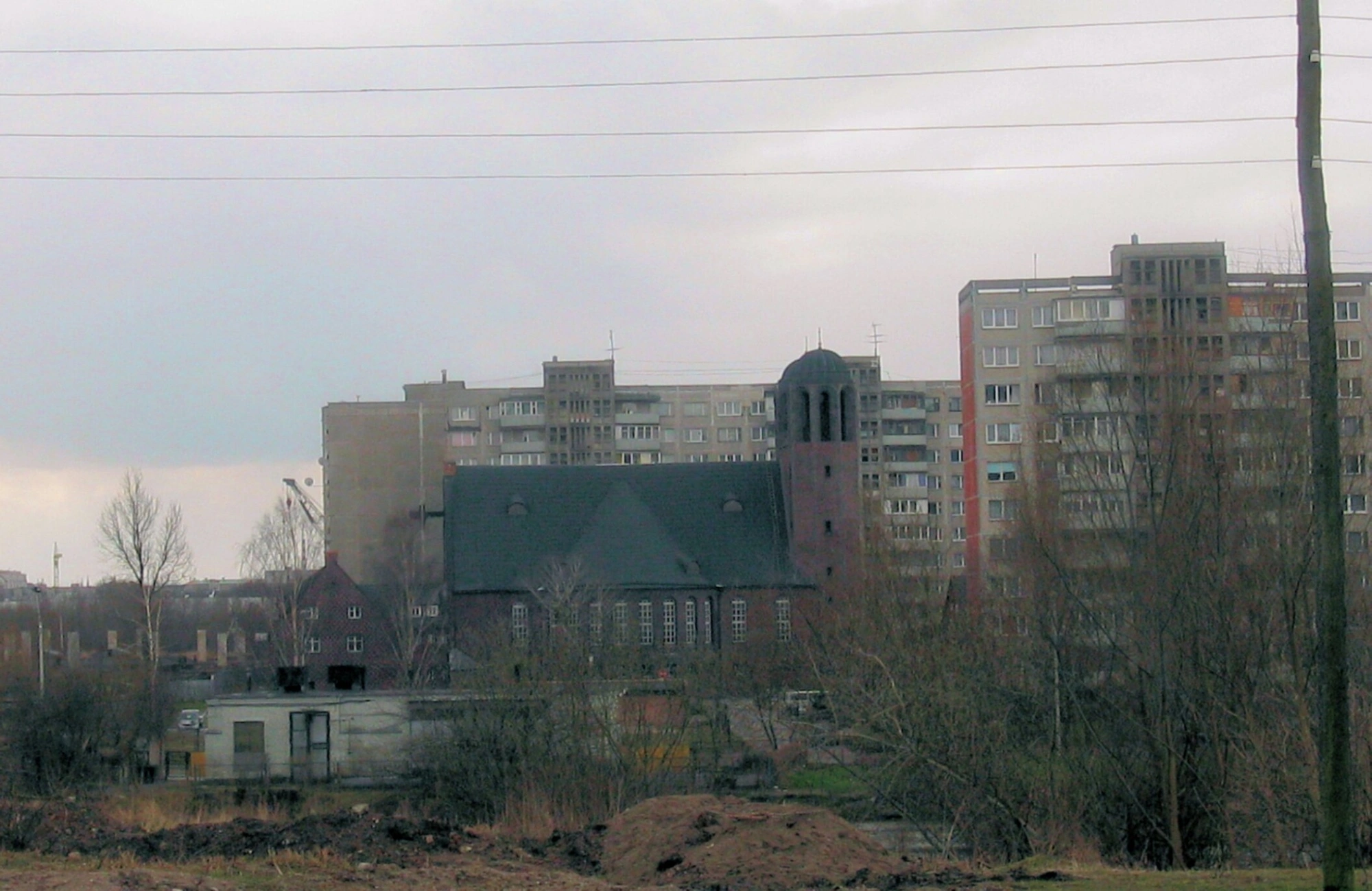 На представленной фотографии запечатлён Крестовоздвиженский собор — кафедральный храм Калининградской епархии Русской Православной Церкви, известный также под своим историческим названием Кройцкирха. Собор располагается в самом сердце города, на пересечении современных улиц, что символизирует глубокую связь между историческим наследием Восточной Пруссии и современной российской духовностью.