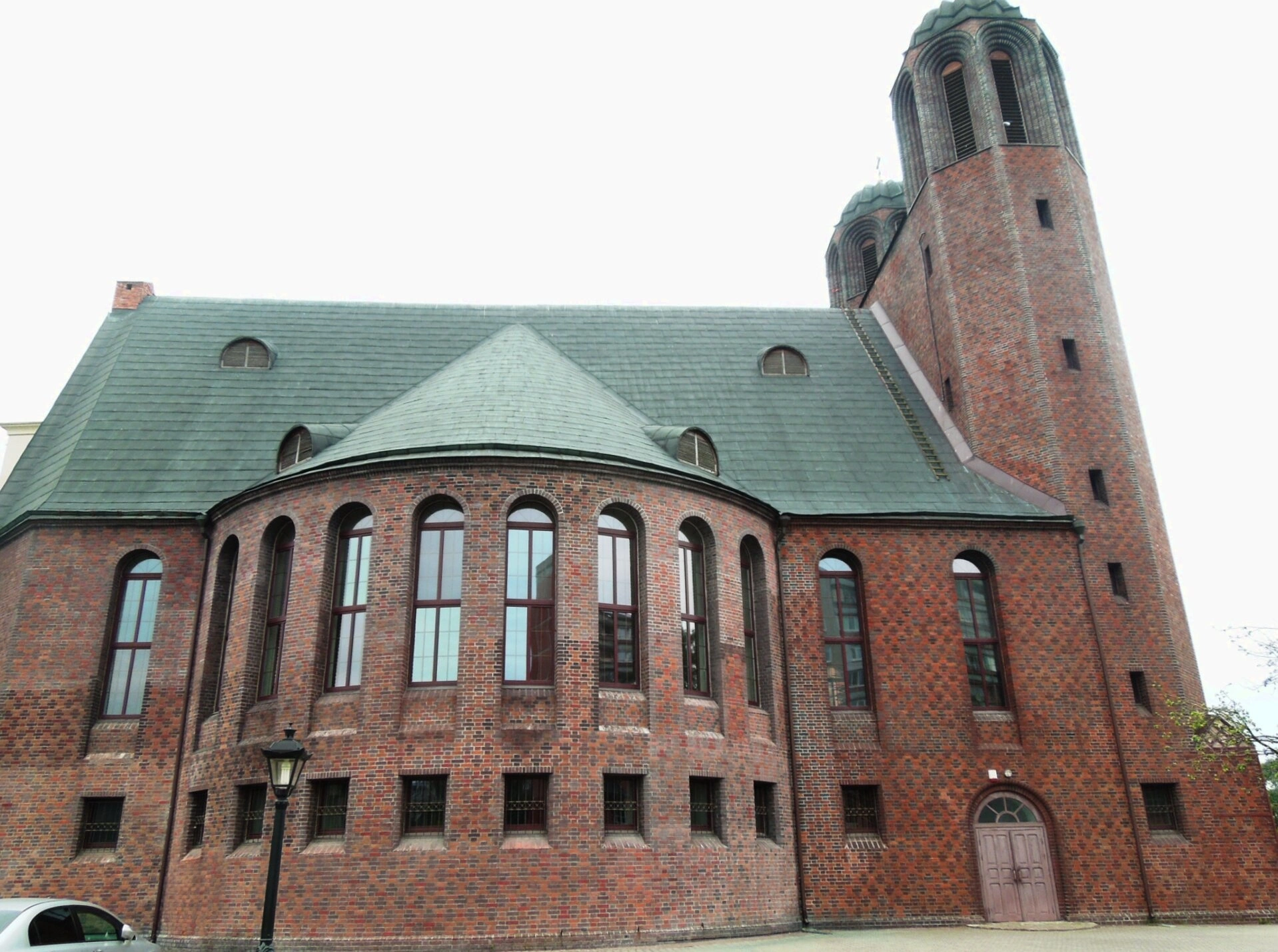 Изначально сооружение было возведено в 1933 году как лютеранская кирха Креста (Кройцкирха) для жителей нового района Кёнигсберга — Амалиенау. Храм, построенный из клинкерного кирпича, чудом уцелел в ходе штурма города в 1945 году, в то время как многие другие постройки были разрушены.
