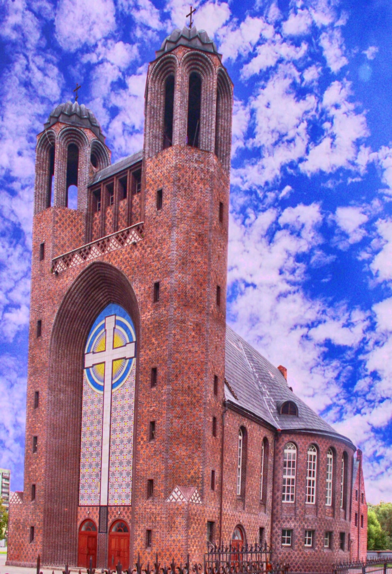 На представленной фотографии запечатлён величественный Крестовоздвиженский собор, расположенный на Октябрьском острове в городе Калининграде. Ныне это православный храм Калининградской епархии, являющийся выдающимся памятником архитектуры и истории.