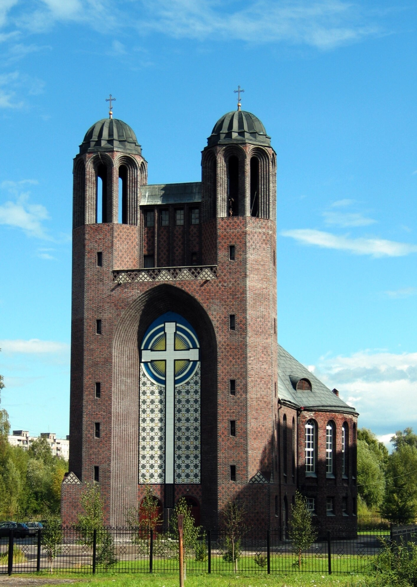 На фотографии запечатлён Крестовоздвиженский собор города Калининграда — православный храм, являющийся выдающимся памятником архитектуры и истории. Собор освящён в честь праздника Воздвижения Честного и Животворящего Креста Господня.