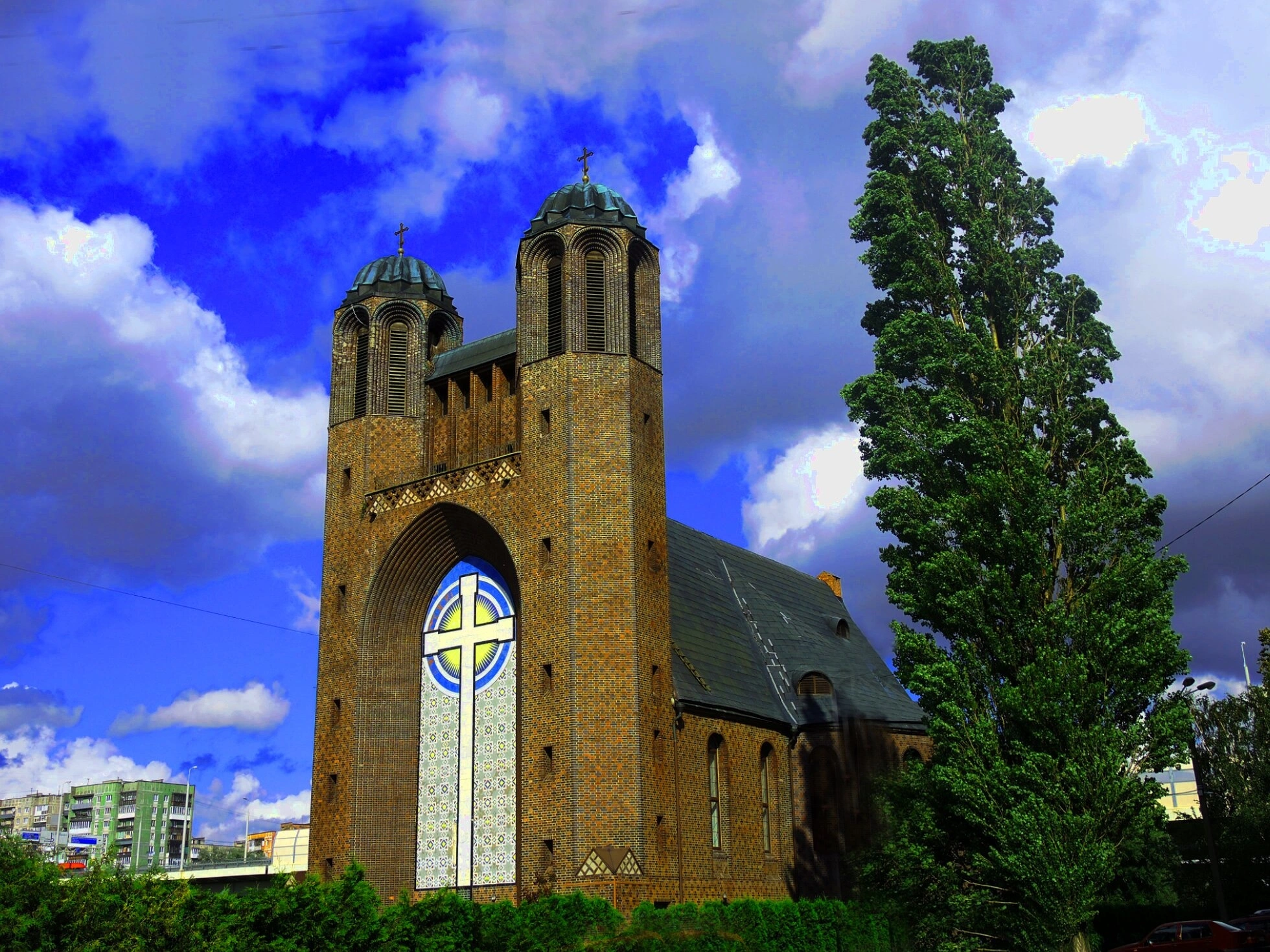 На представленной фотографии запечатлён Крестовоздвиженский собор города Калининграда, являющийся выдающимся памятником сакральной архитектуры. Ныне это православный храм Калининградской епархии, а в прошлом — немецкая лютеранско-евангелическая кирха Святого Креста (Kreuzkirche), освящённая в 1933 году.