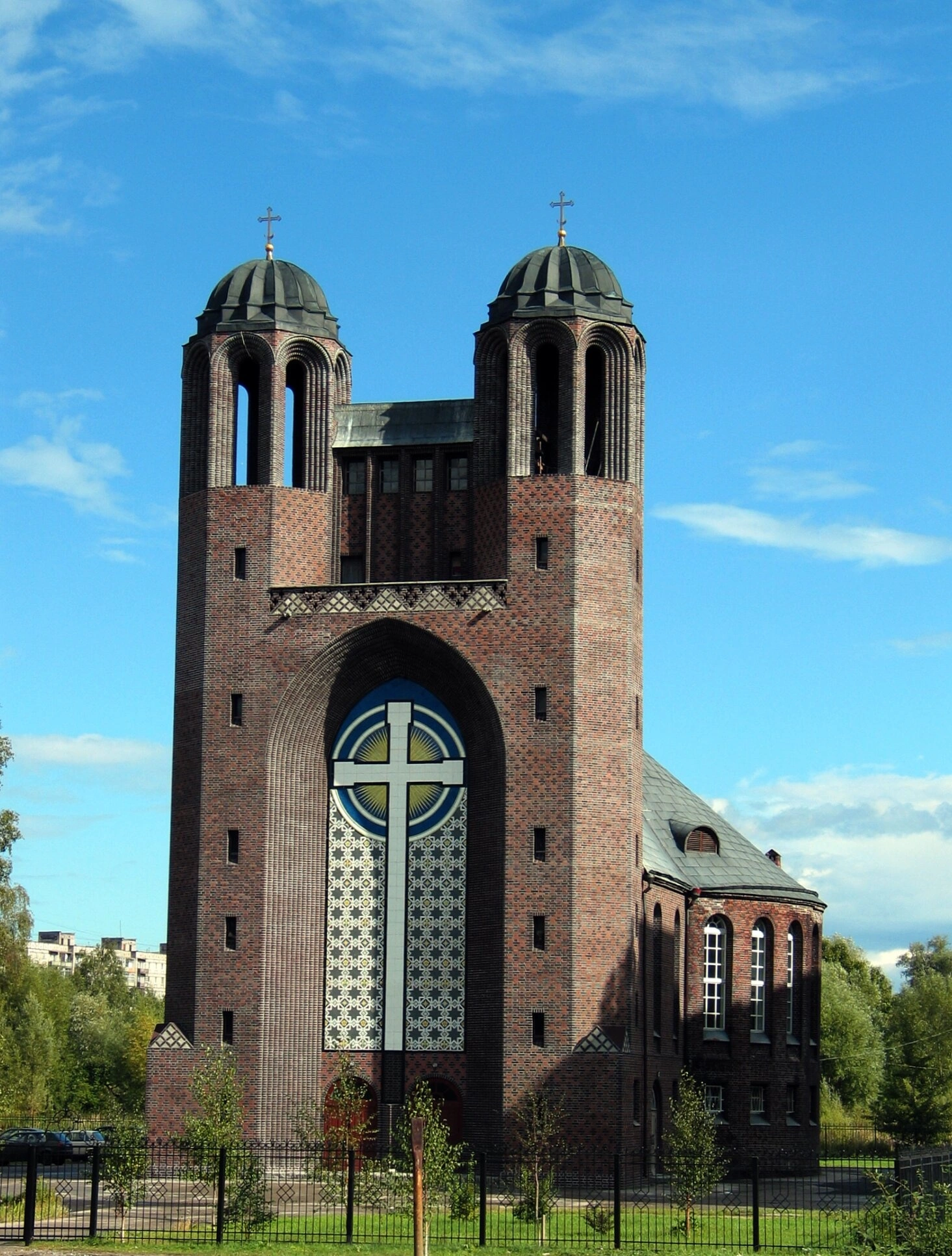 Собор выполнен в стиле модернизированной немецкой готики из красного клинкерного кирпича. Архитектурный ансамбль отличают две стройные башни, увенчанные православными крестами, что символизирует преемственность христианской традиции на этой земле. Главной фасадной особенностью является огромный витраж с изображением креста, который наполняет внутреннее пространство храма особым благодатным светом.