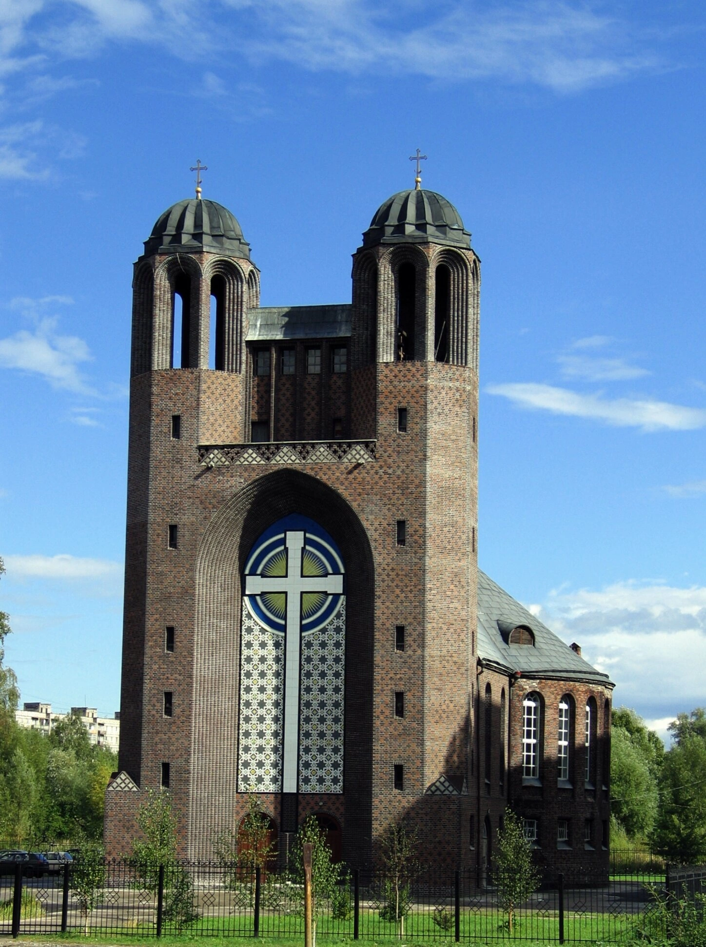 На представленной фотографии запечатлён Крестовоздвиженский собор города Калининграда, являющийся кафедральным собором Калининградской епархии Русской Православной Церкви. Это величественное здание, расположенное на Октябрьском острове, имеет богатую и сложную историю, отражающую судьбу всего региона.