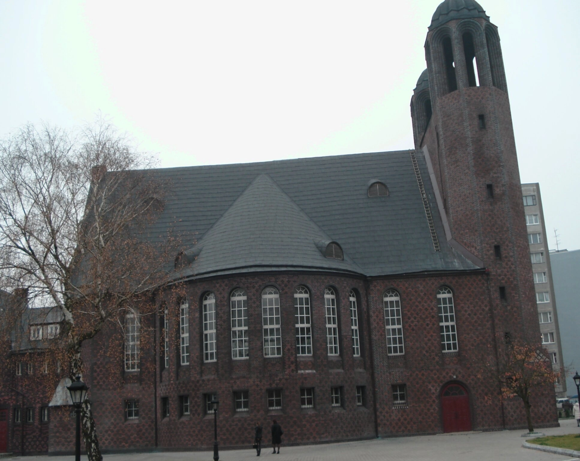 Архитектурный облик храма представляет собой яркий пример кирпичного экспрессионизма, популярного в Восточной Пруссии в первой половине XX века. Массивное сооружение из клинкерного кирпича увенчано высокой башней с куполом, в которой размещена звонница. Фасад здания характеризуется строгостью и монументальностью, ему присущи лаконичные формы и аскетичный декор. Многочисленные высокие окна призваны наполнять внутреннее пространство храма естественным светом, создавая особую молитвенную атмосферу.