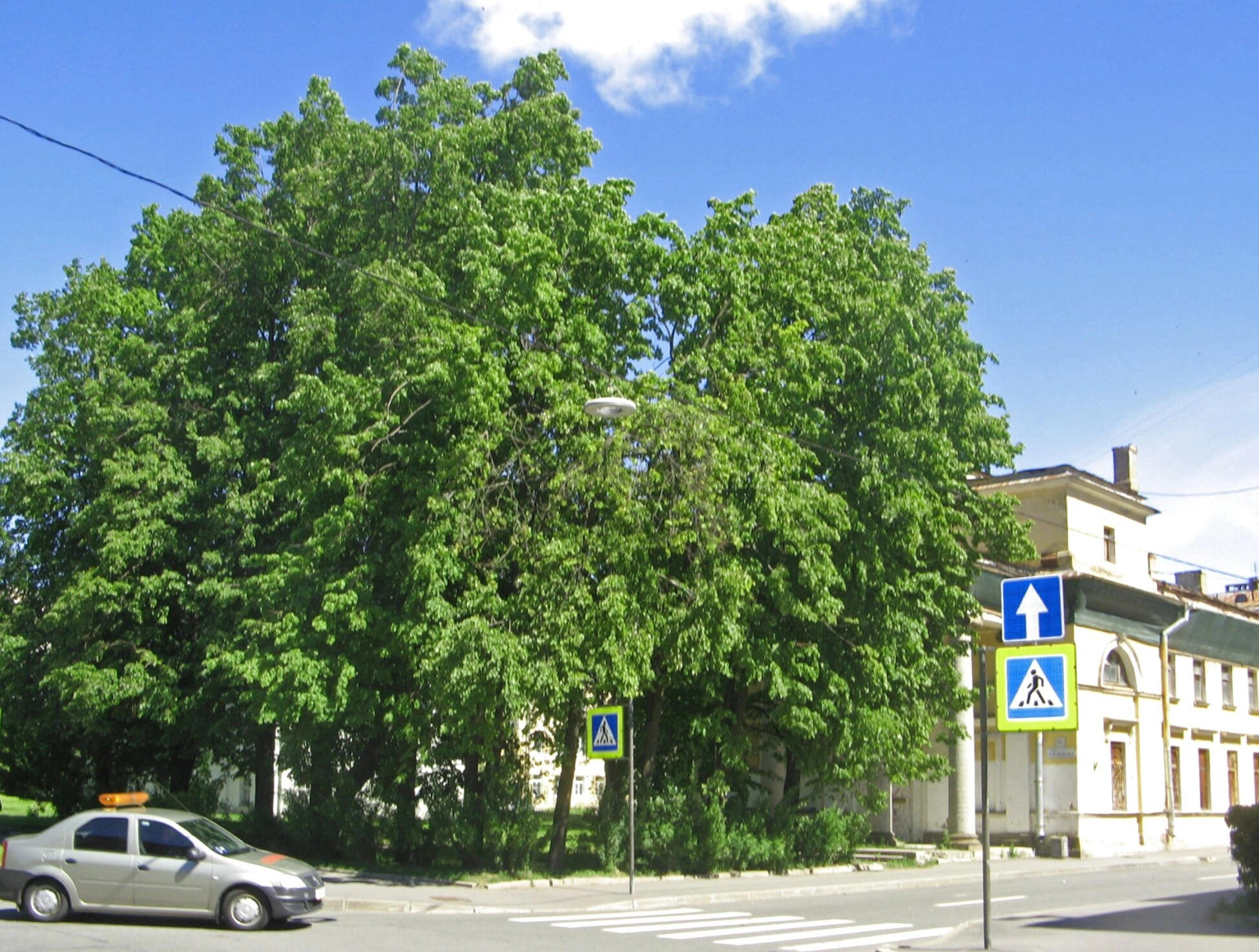 На фотографии запечатлён вид на величественный Крестовоздвиженский собор, также известный как Старо-Кронштадтский морской собор, являющийся одним из духовных центров города-крепости Кронштадт. Снимок сделан с улицы Зосимова, открывая вид на северный фасад храма и его живописное окружение.