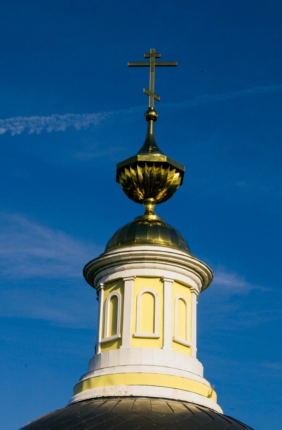 Церковь Николая Чудотворца, чей купол изображён на снимке, является значимым духовным центром и памятником церковной архитектуры. Золочение купола выполнено в лучших традициях русского храмового зодчества, что подчёркивает сакральную важность этого места. В солнечных лучах купол сияет особенным светом, напоминая верующим о нетварном Фаворском свете и озаряя окрестности благодатью.