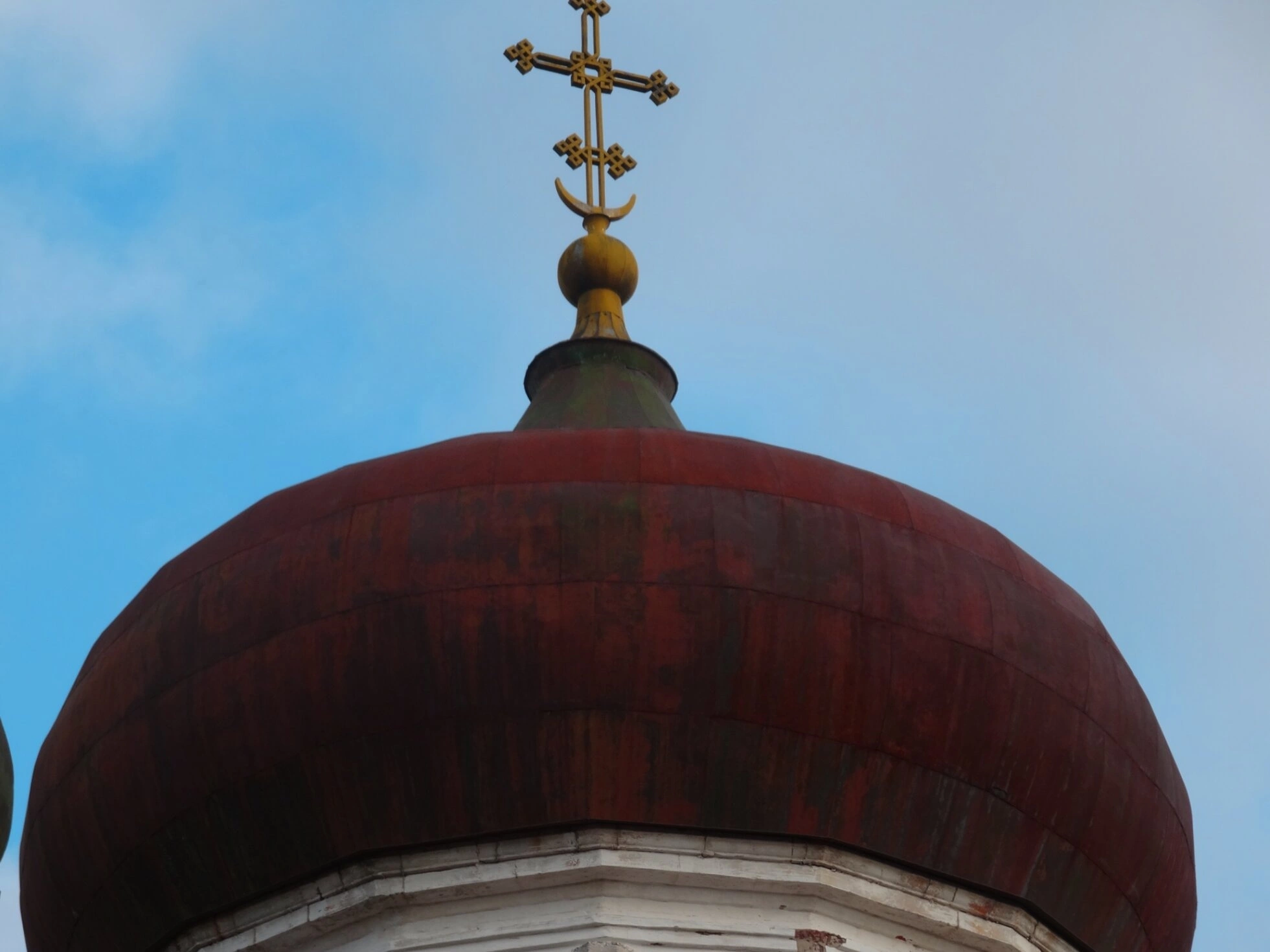 Над куполом возвышается традиционный православный крест, установленный на шарообразном основании — символе Церкви Христовой, держащей всю вселенную. Особого внимания заслуживает уникальная деталь: в основании креста расположен полумесяц, что является древним символом якоря — знака христианской надежды на спасение.