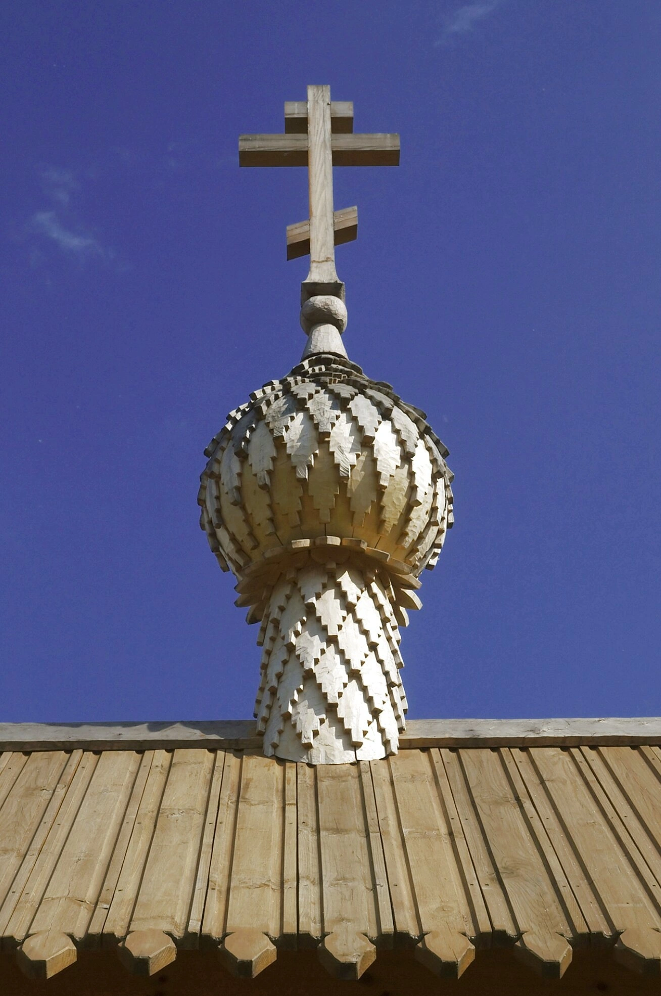 Восьмиконечный крест, установленный на маковке купола, является каноническим для Русской Православной Церкви. Его форма глубоко символична: средняя перекладина предназначена для рук Спасителя, верхняя малая перекладина представляет собой табличку с надписью «Иисус Назорей, Царь Иудейский», а нижняя косая перекладина — подножие, символизирующее мерило праведности.
