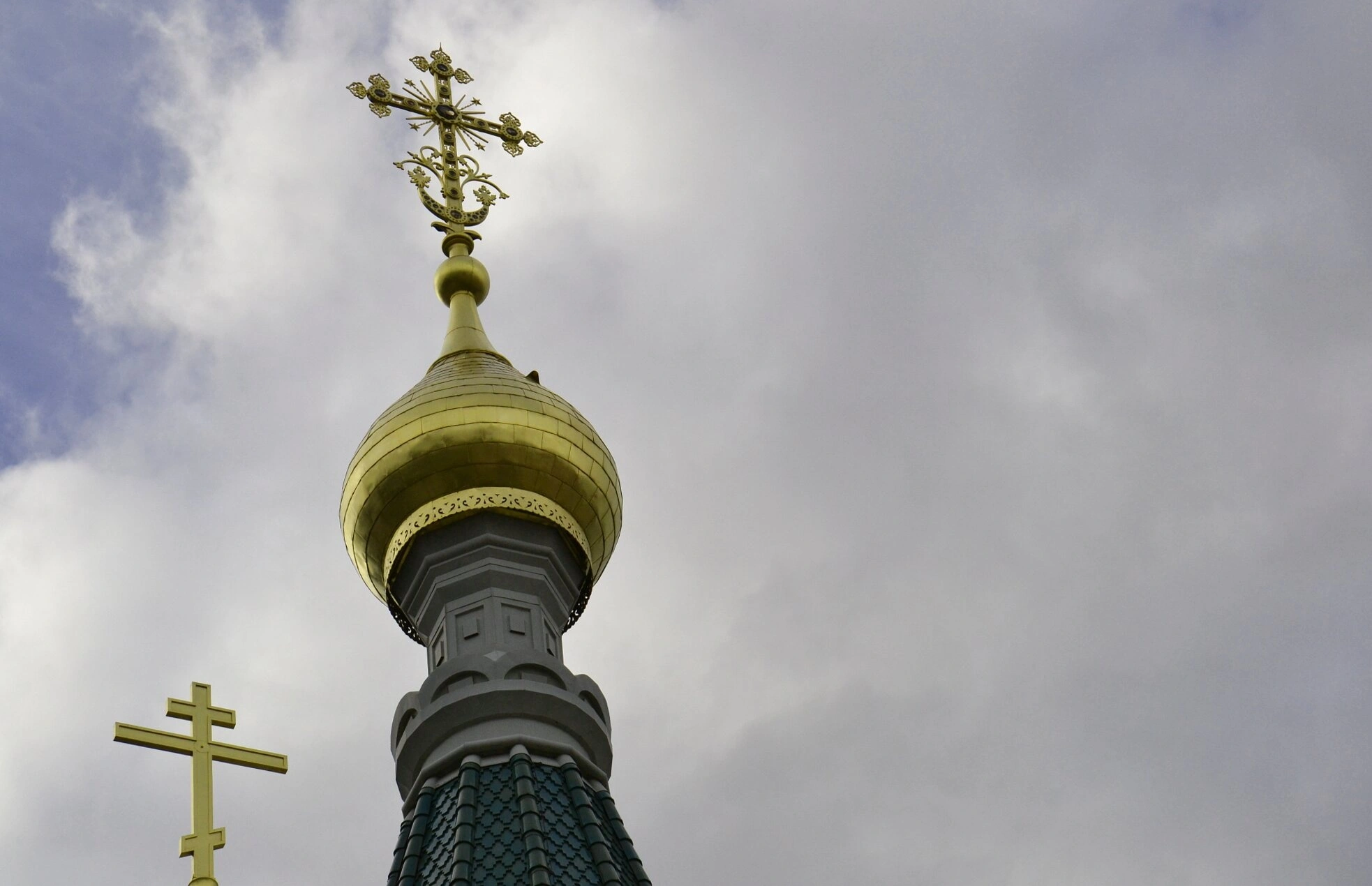Снимок сделан с нижнего ракурса, что позволяет ощутить монументальность и величие домостроительства Божия, а облачное небо на заднем плане создаёт ощущение лёгкости и божественного присутствия. Этот собор, расположенный в самом сердце Европы, служит напоминанием о единстве православного мира и красоте богослужебной традиции.