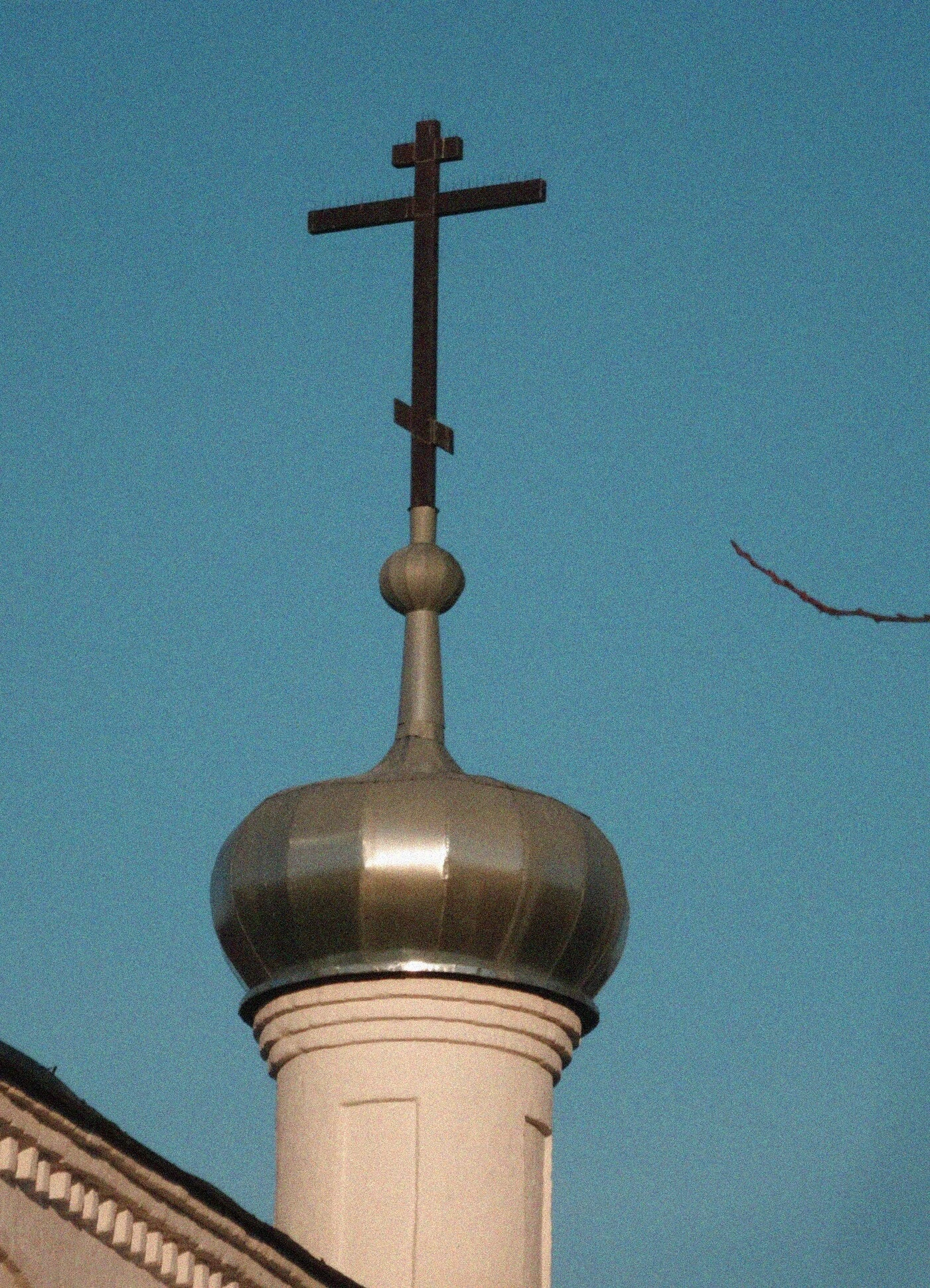 Купол, традиционной для русского храмостроения формы, символизирует небесный свод и горний мир. Его покрытие, вероятно, выполнено из листового железа или меди и несёт на себе благородную патину времени. Венчает купол изящный восьмиконечный православный крест, являющийся символом спасения и победы жизни над смертью. Под лучами солнца крест сияет, напоминая верующим о свете Христовой истины.