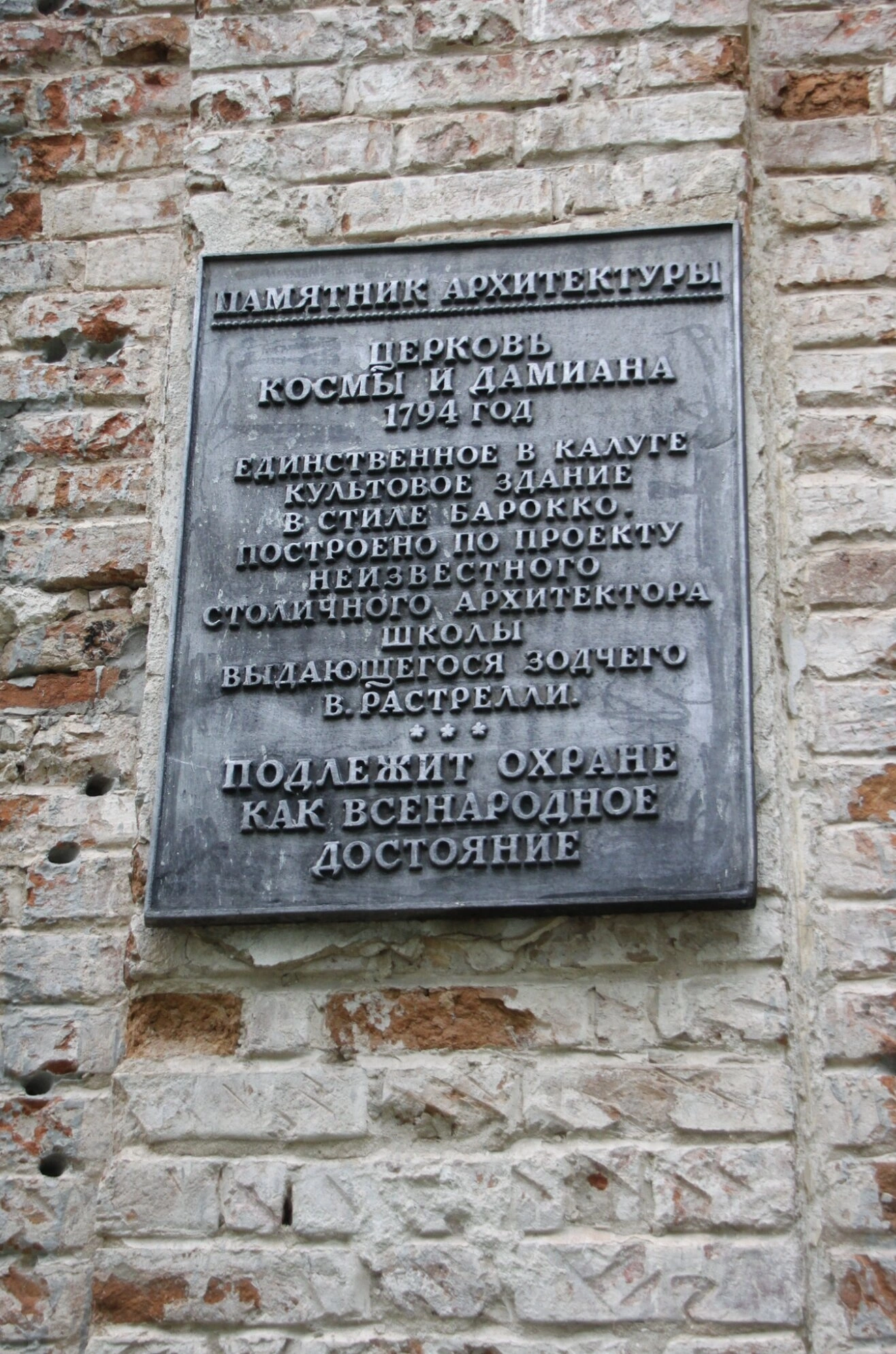 - Мемориальная доска Церкви Космы и Дамиана в Калуге