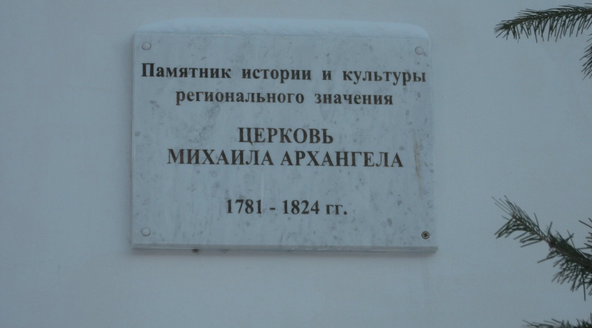 На представленной фотографии запечатлена мемориальная доска, установленная на стене Церкви Михаила Архангела в городе Тюмени. Данная информационная табличка свидетельствует о высоком статусе этого православного храма, который признан объектом культурного наследия и охраняется государством в качестве памятника истории и культуры регионального значения.