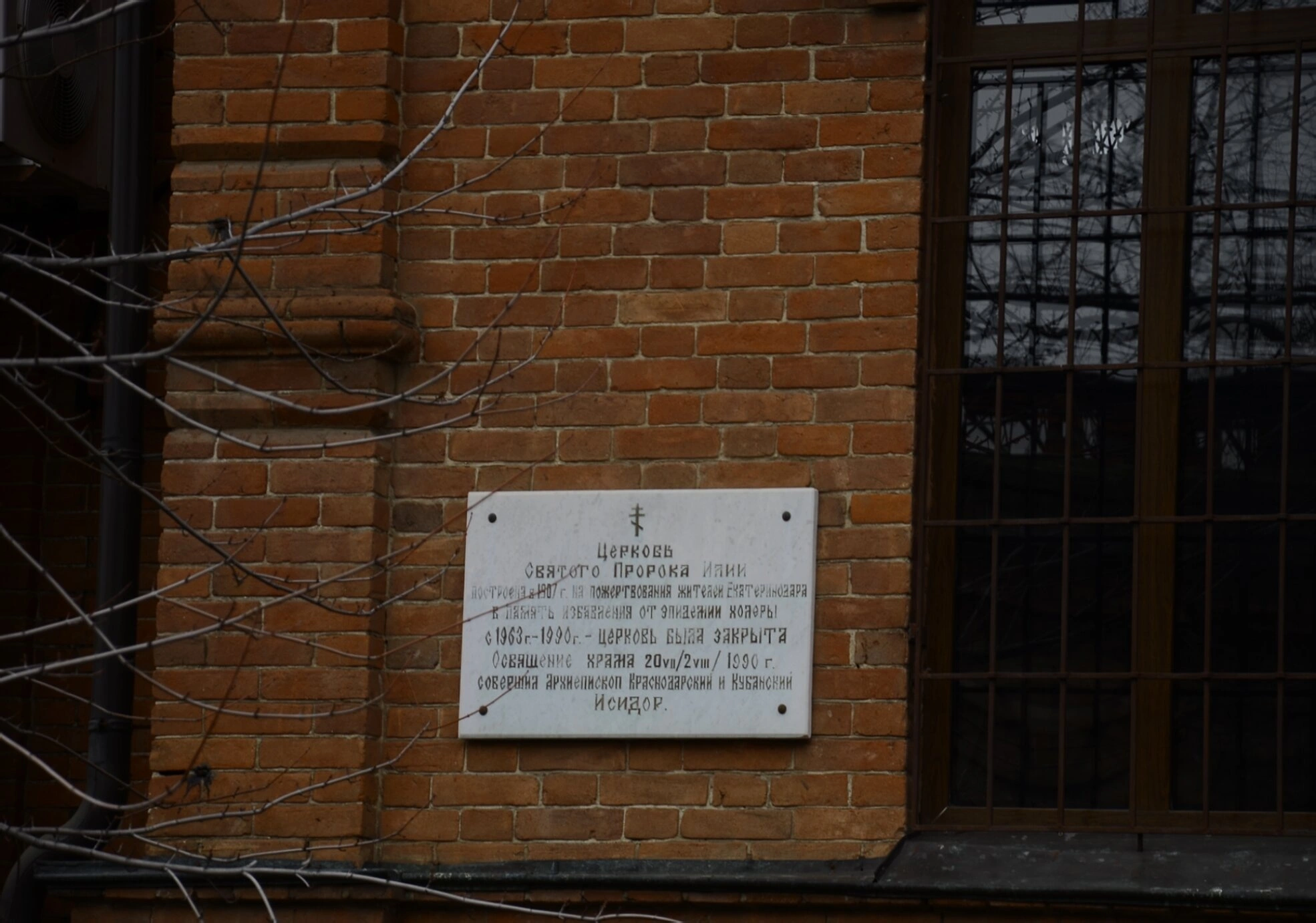 Мемориальная доска Свято-Ильинского храма в Краснодаре
