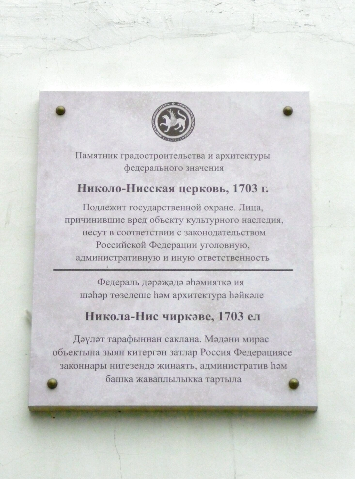 Мемориальная табличка на Николо-Нисской церкви в Казани
