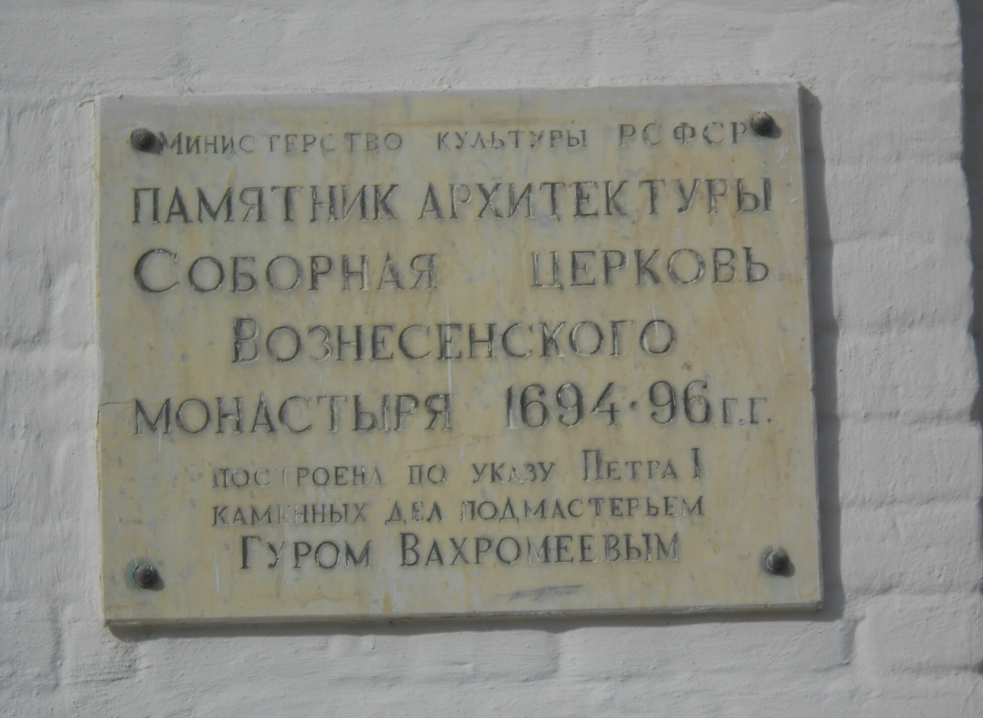 - Мемориальная табличка на Соборной церкви Вознесенского монастыря в Смоленске