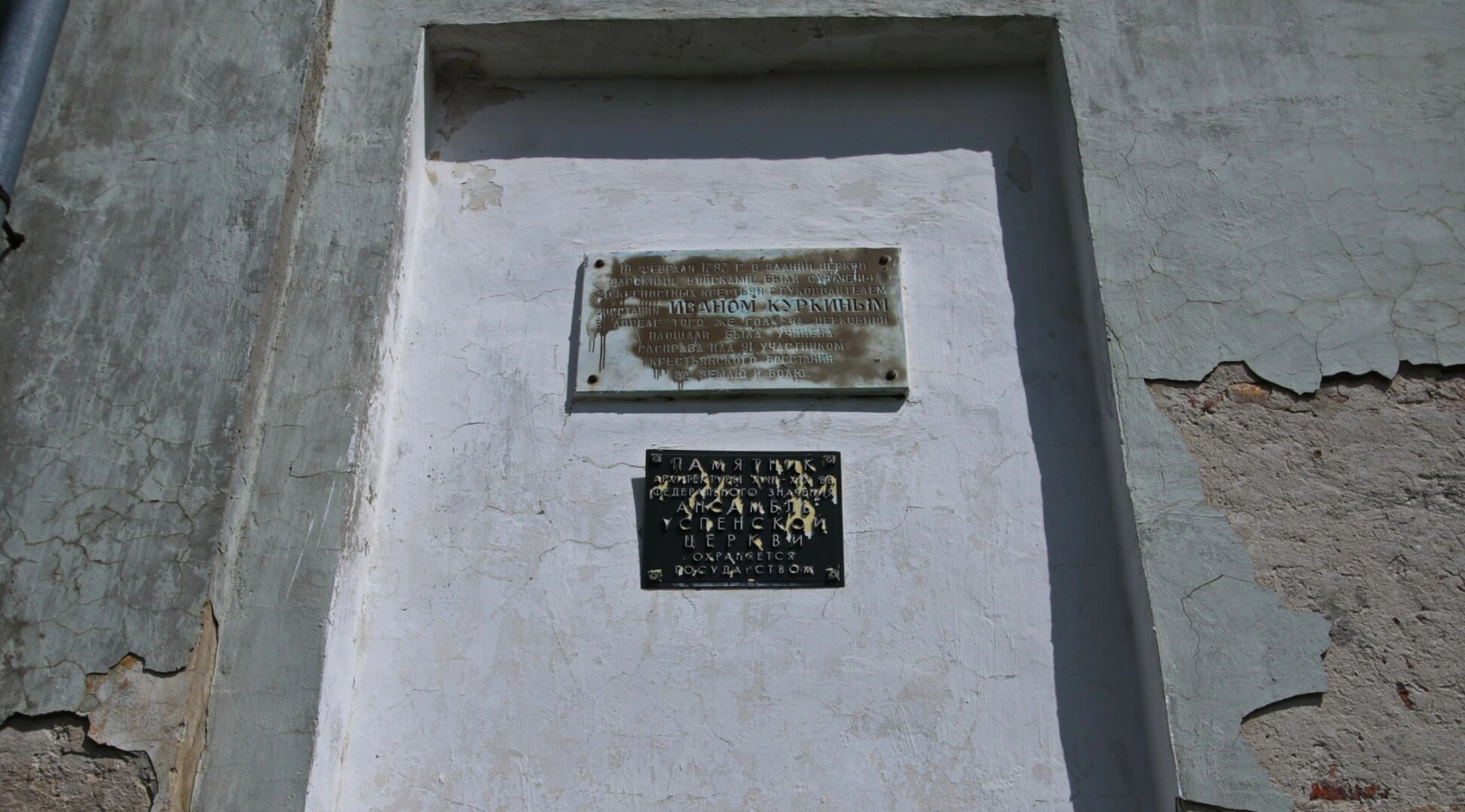Мемориальные доски на стене Успенской церкви в селе Радогощь