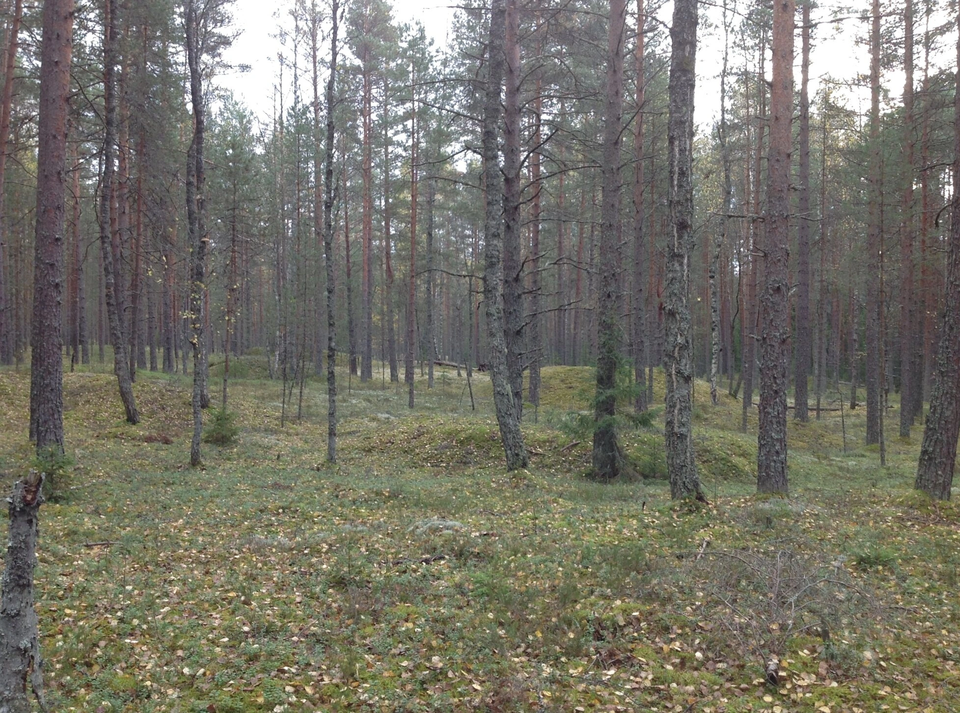Лесной массив, изображённый на снимке, составляет преимущественно сосновый бор с характерным для этих мест покровом из зелёных мхов, лишайников и опавшей хвои. Особого внимания заслуживают сохранившиеся элементы культурного ландшафта: при внимательном рассмотрении видны небольшие холмы и возвышения, которые, по всей видимости, являются остатками церковного фундамента или намоленными местами, где ранее совершались богослужения и требы.
