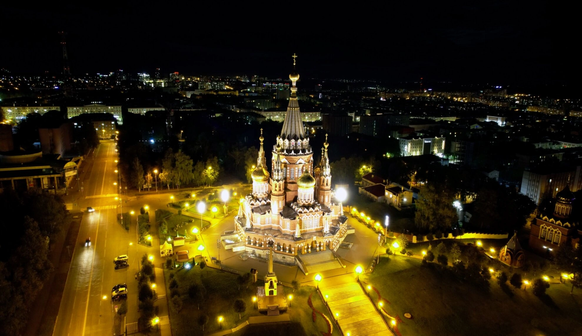 Возрождение святыни стало актом народного покаяния и веры. Новый собор был отстроен и торжественно освящён в 2007 году. Храм воссоздан по сохранившимся чертежам и фотографиям своего предшественника, что позволяет нам и сегодня лицезреть его уникальный архитектурный облик, сочетающий традиции русского церковного зодчества. Ночная иллюминация, запечатлённая на фотографии, подчёркивает монументальность и одновременно лёгкость архитектурных форм, устремлённость храма в небо, а золото куполов символизирует нетварный Божественный свет. Этот образ напоминает верующим о словах Спасителя: «Вы — свет мира» (Мф. 5:14). Сегодня собор является не только главным храмом Удмуртской земли, но и одним из самых узнаваемых символов города Ижевска, притягивающим паломников и туристов.