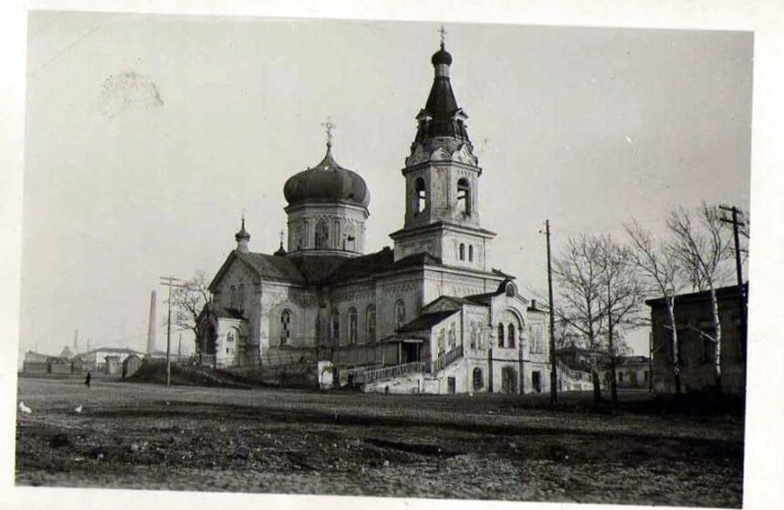На исторической фотографии запечатлён Михайло-Архангельский храм, являющийся одним из духовных центров города Новочеркасска. Этот православный собор, освящённый в честь предводителя Небесного Воинства Архистратига Михаила, обладает богатой историей и представляет собой выдающийся памятник церковной архитектуры.
