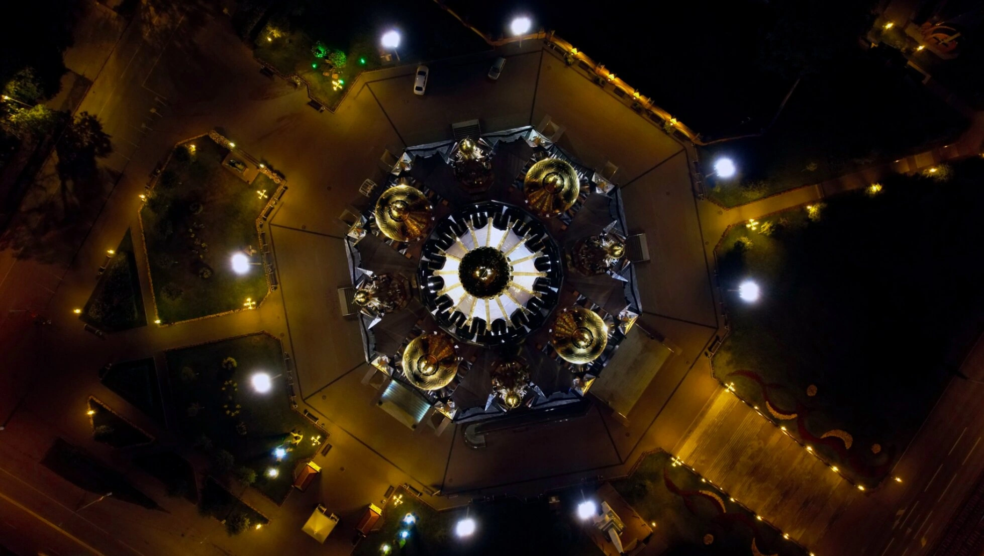 На фотографии особенно хорошо видны центральный золочёный купол, символизирующий Господа Иисуса Христа, и четыре меньшие главы, обозначающих четырёх евангелистов. Торжественная подсветка делает храм видимым издалека, превращая его в духовный маяк для верующих. Собор является не только архитектурной доминантой, но и центром религиозной жизни Удмуртской земли, привлекая паломников и туристов своей благодатной красотой и богатой историей.