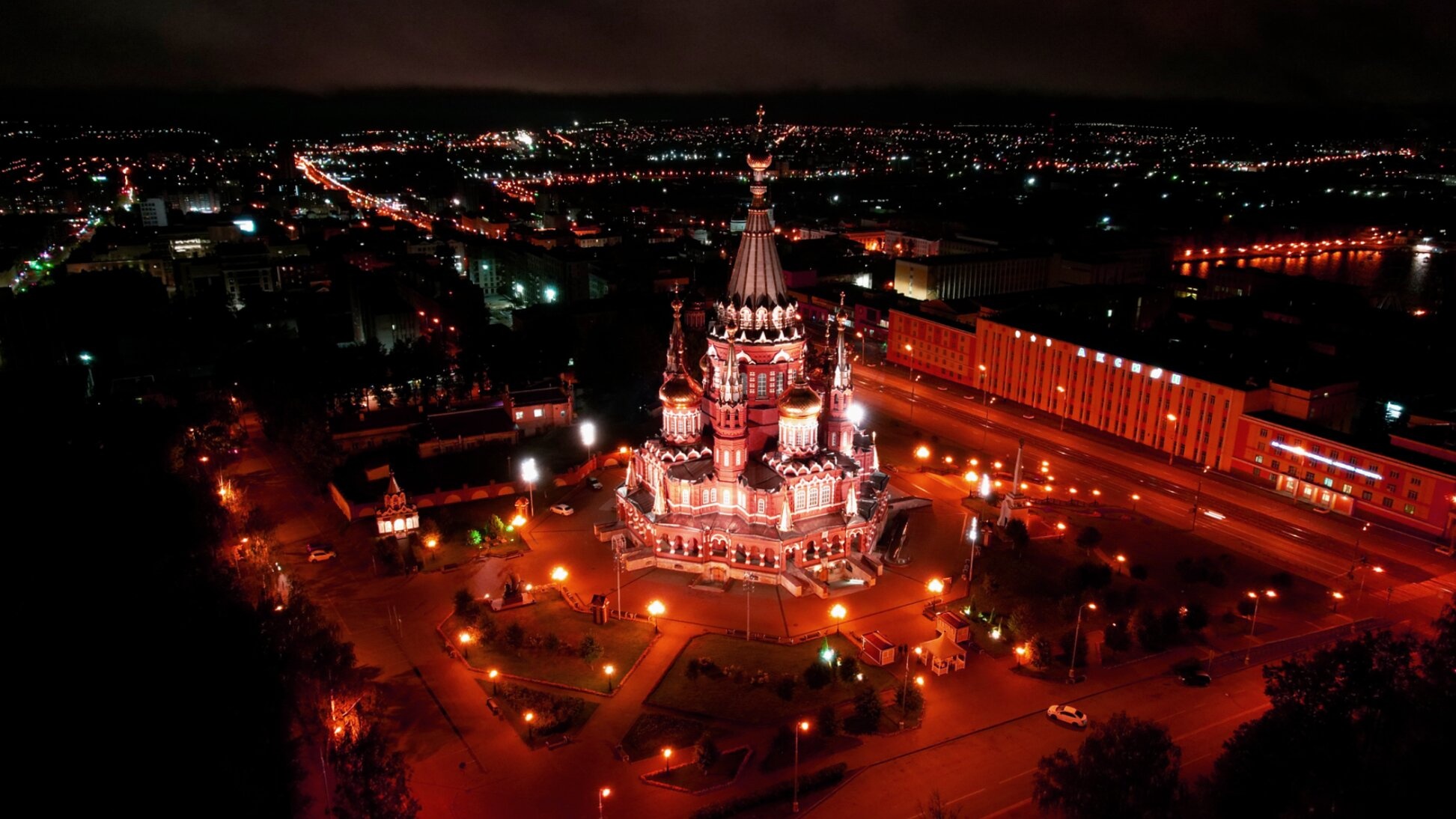 Ночная подсветка подчёркивает монументальность и благодатную красоту этого святого места, делая его видимым из многих точек города. В тёмное время суток собор приобретает особое величие и торжественность, напоминая верующим о вечном свете истинной веры. Окружённый огнями ночного Ижевска, он представляет собой впечатляющее зрелище, вдохновляющее на молитву и поклонение.