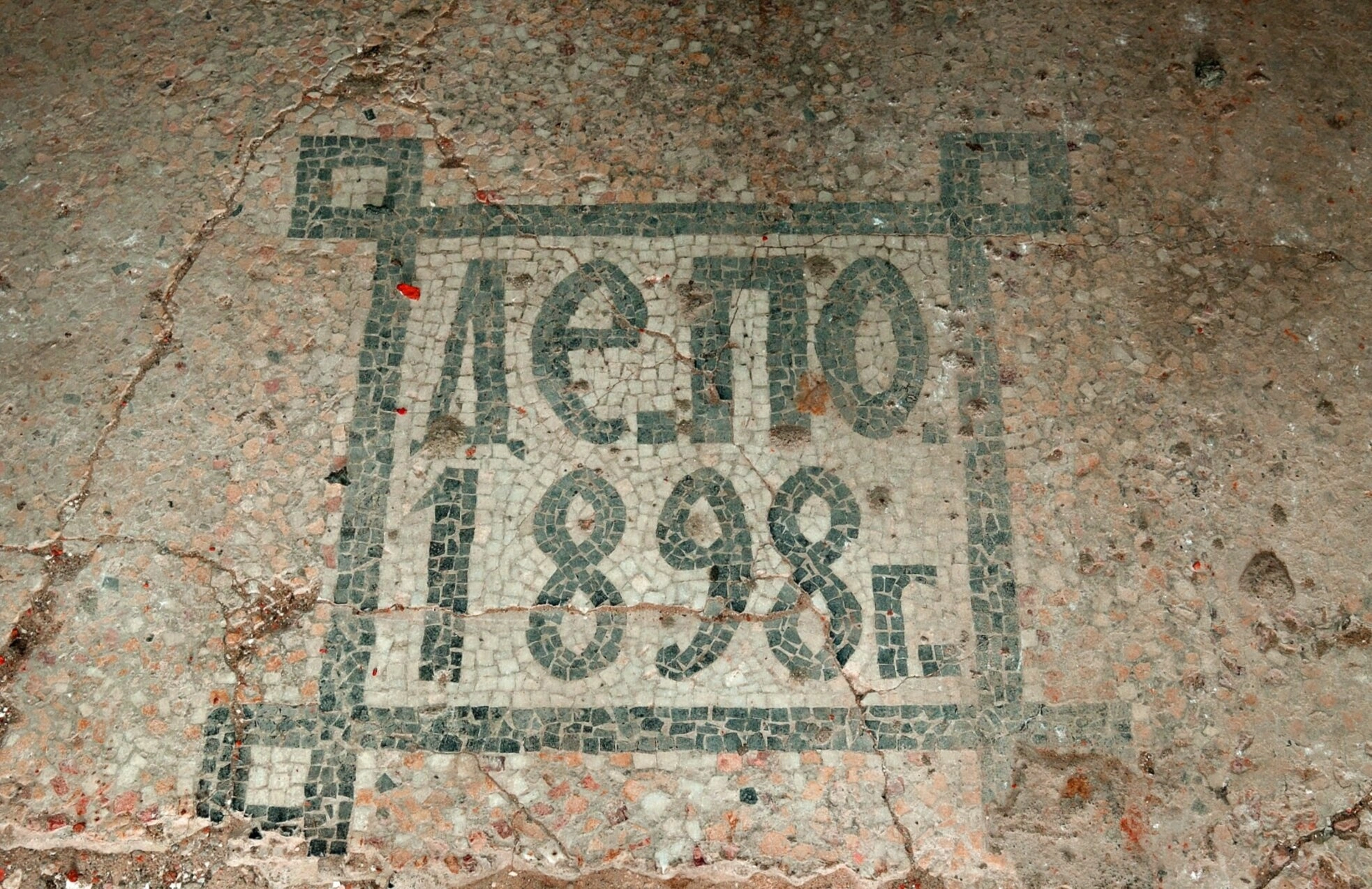 Мозаичная надпись «Дело 1898 года» в Церкви Преображения Господня