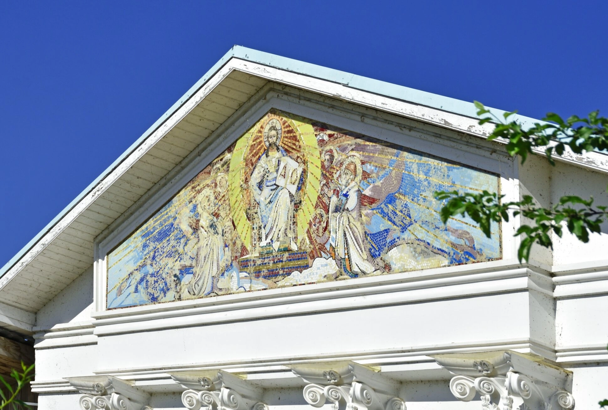 Мозаичное панно «Христос Вседержитель» на Никольском храме в Лукьяново